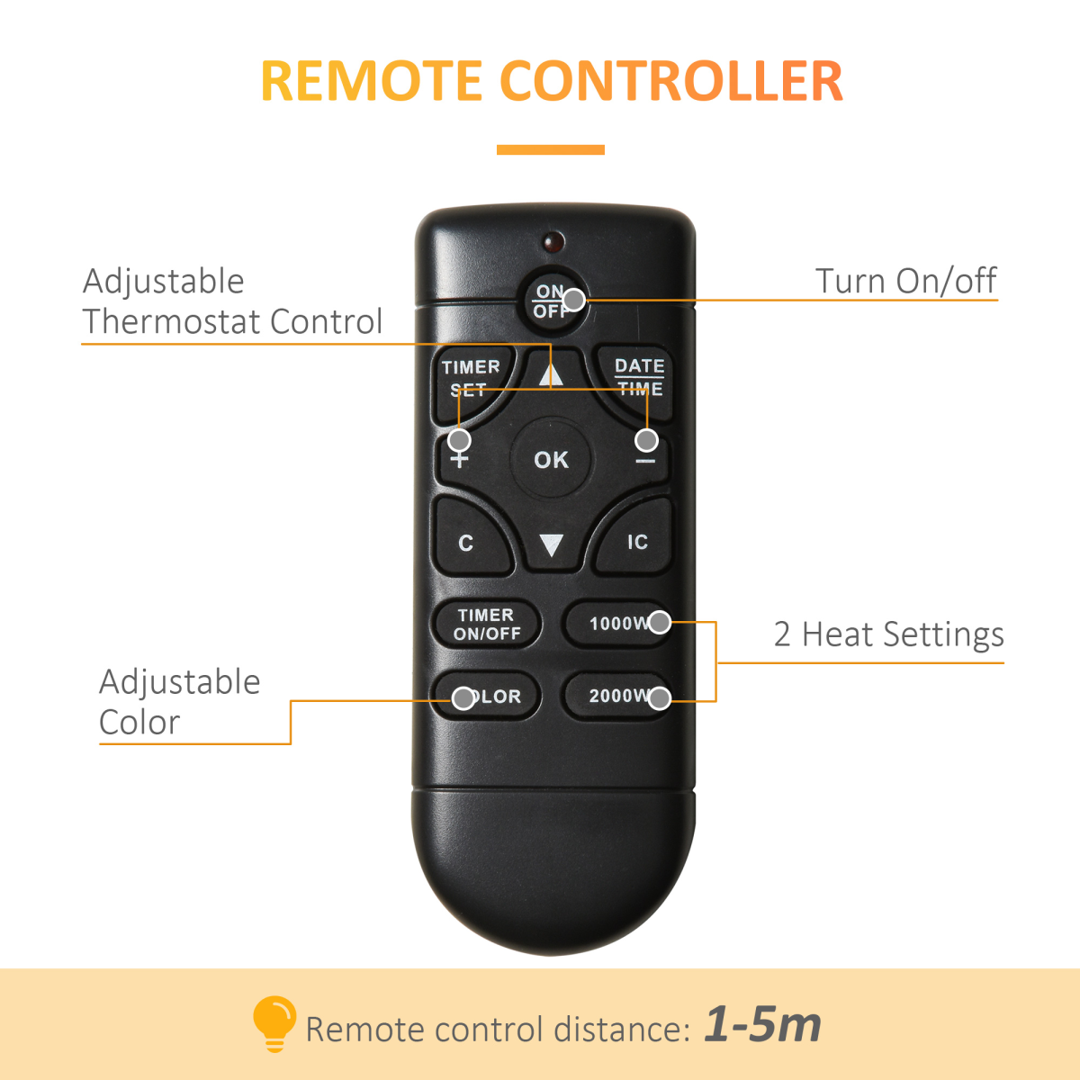 The electric fireplace can be easily operated using the user-friendly on-unit buttons, or you can take advantage of the included remote control for added convenience. Plus, it features a timer function for your convenience, allowing you to set it to turn on or off at your desired times.