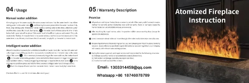 This fireplace has MANUAL/AUTOMATIC Integrated two water filling functions.