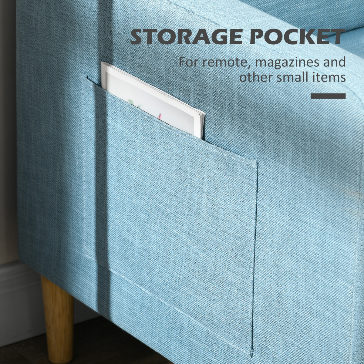 2 Seater Sofa Modern Fabric Couch with Wood Legs and 2 Pockets Blue