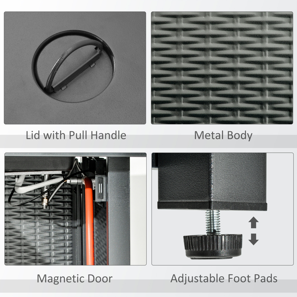 Square Propane Gas Fire Pit Table Rattan Smokeless Patio Heater Lava Rocks & Lid