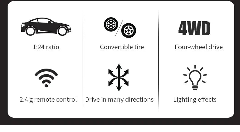 1:24 High Speed RC Drift Vehicle Cars Mustang 4WD Remote Control Racing Car Gift Toy