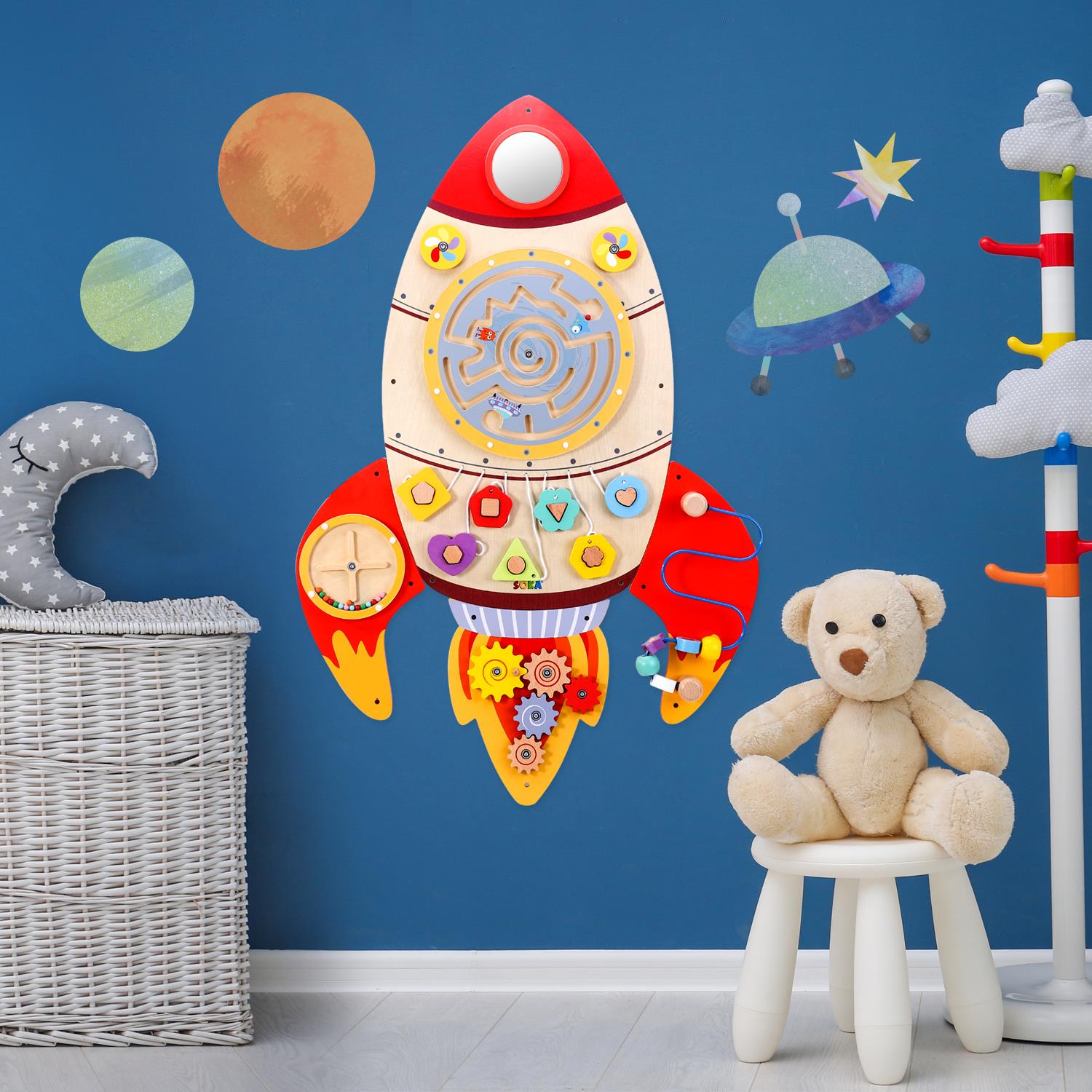 Ignite your child's imagination with the SOKA Wooden Element-Rocket! This engaging toy encourages endless creativity and exploration as kids embark on thrilling adventures through space. Packed with a medley of motor skill activities, this wooden board promises hours of entertaining playtime, enabling children to invent and narrate their very own captivating stories.