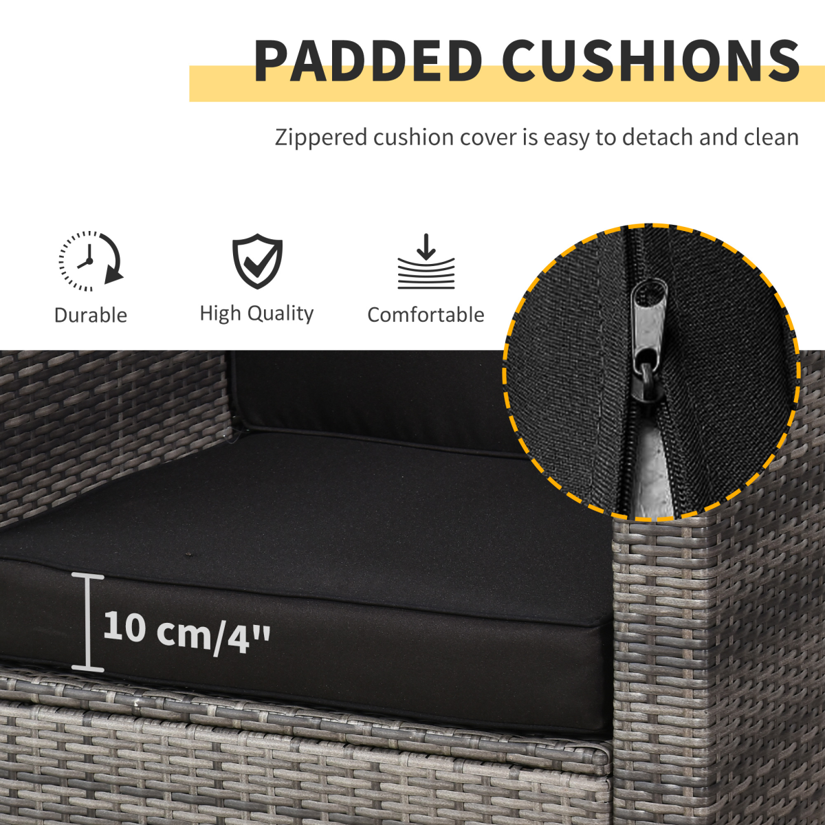 2-Person Rattan Sofa Set with Cushions & Table, Grey, Steel Frame
