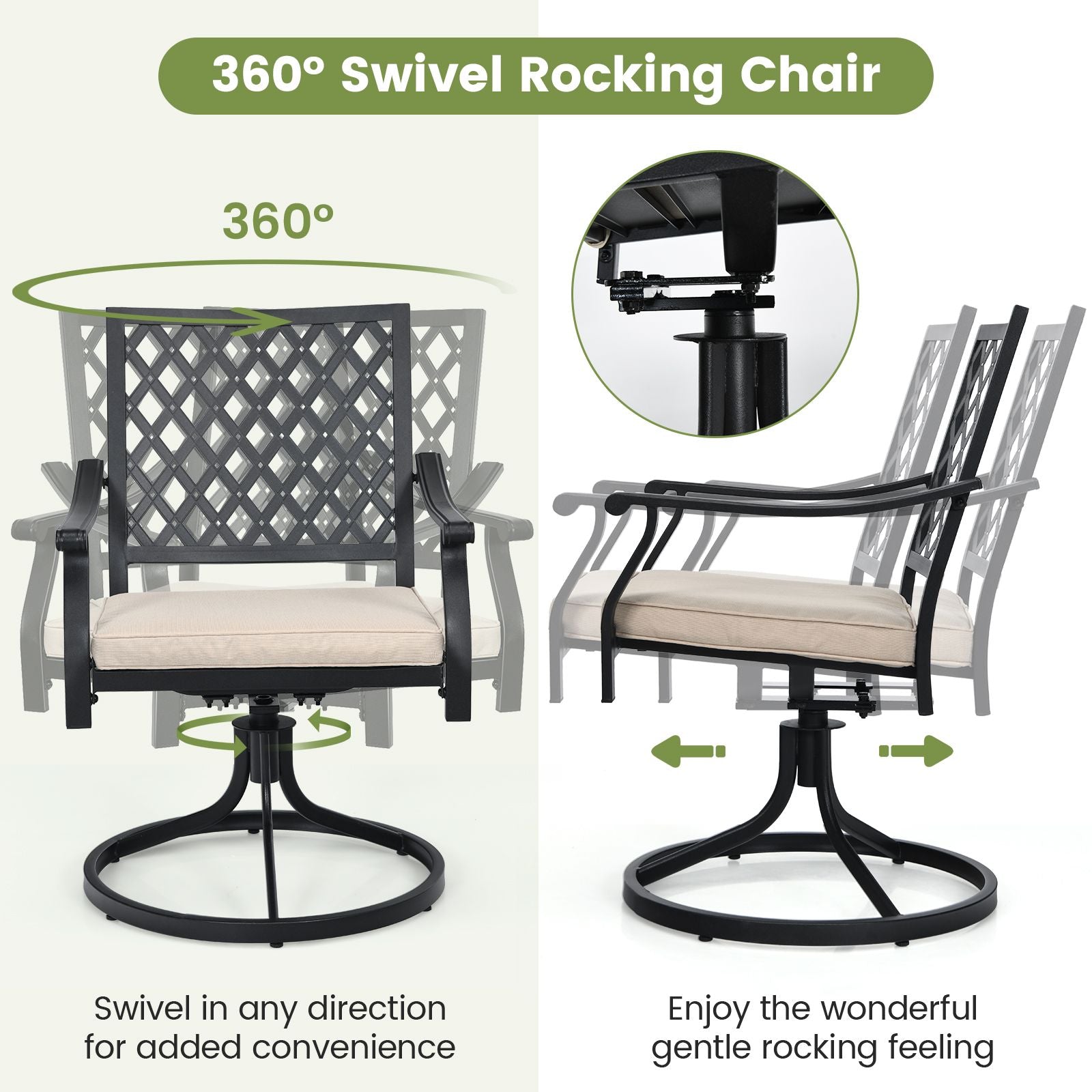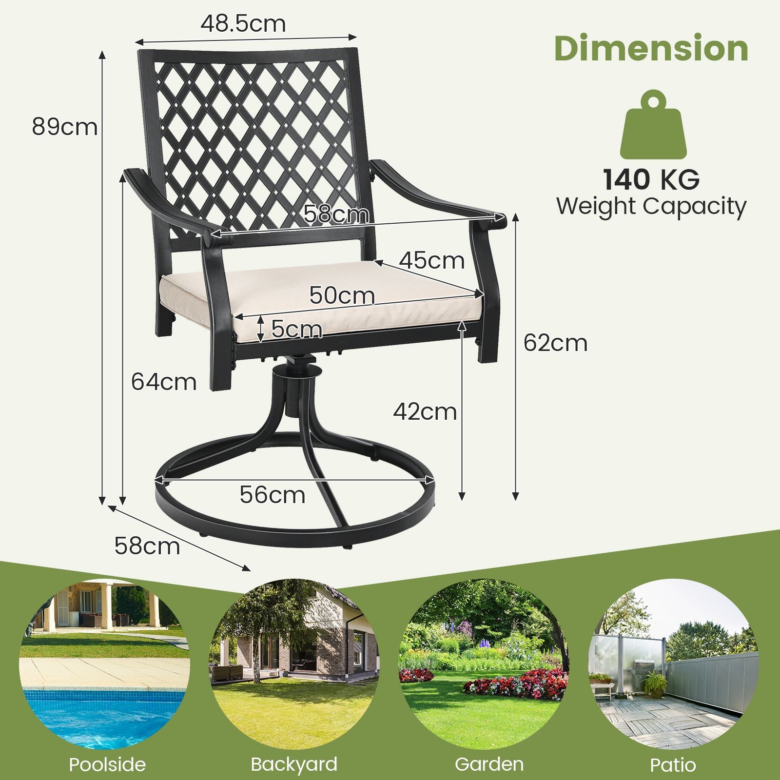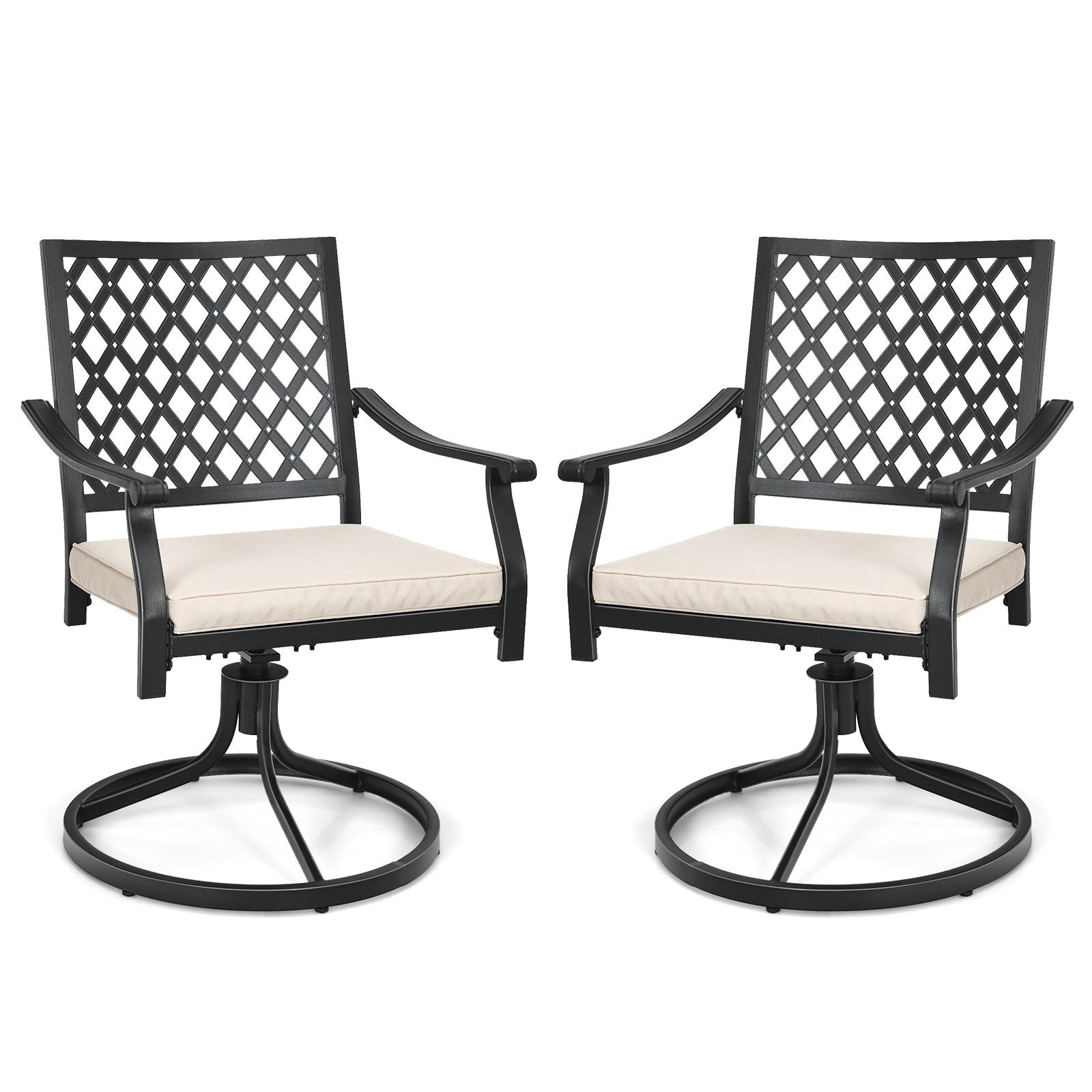 2 Pieces Outdoor Swivel Chair Patio Bistro Dining Chair Set with Soft Seat Cushion