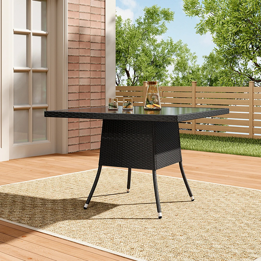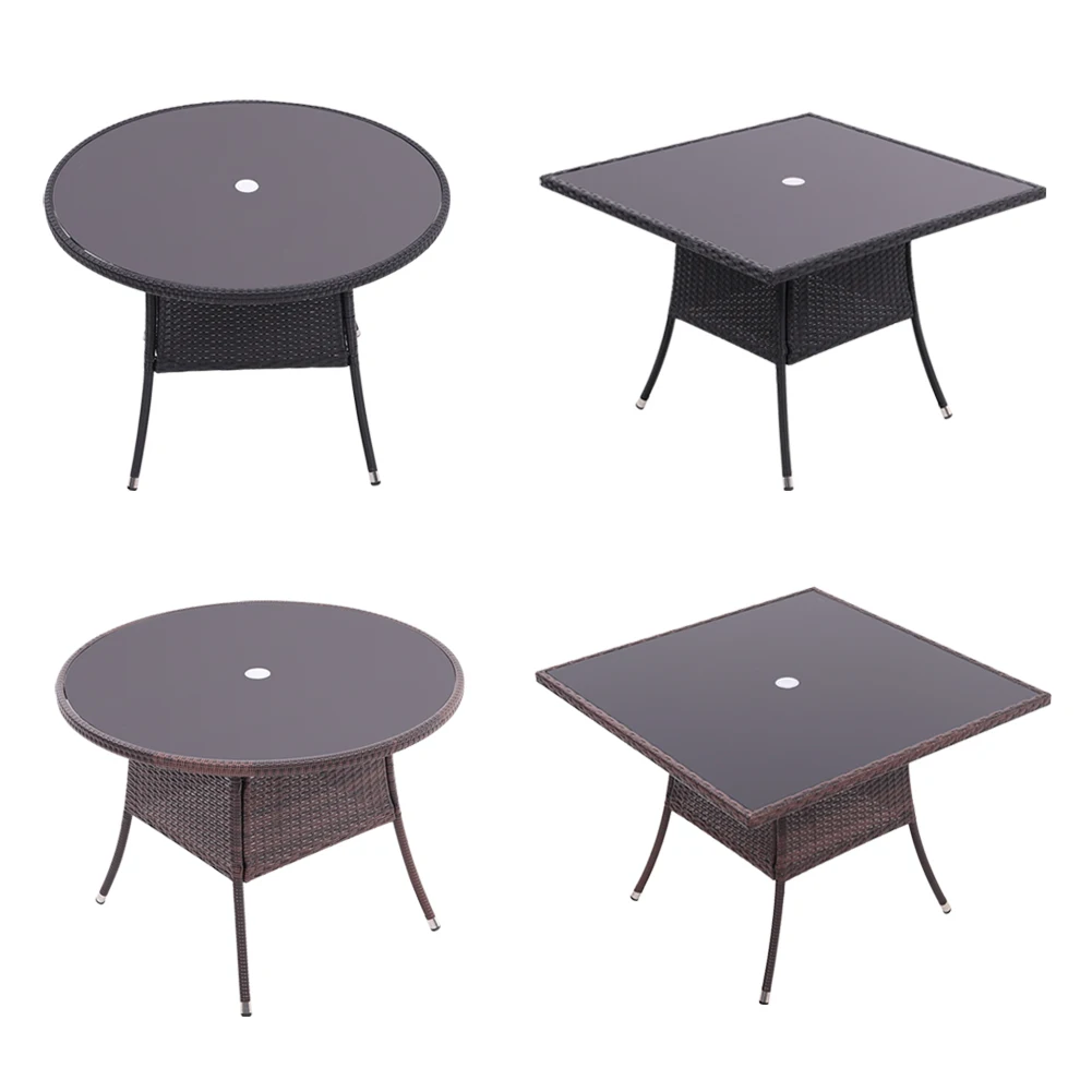 Garden Wicker Table with Tempered Glass and Parasol Hole