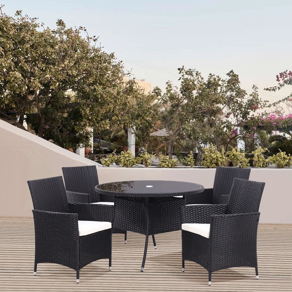 The Breeins table features a robust frame meticulously wrapped in woven wicker, showcasing a stunning rattan effect that enhances its aesthetic appeal. The splayed legs provide excellent stability, ensuring it stands strong against the elements. Plus, the thoughtfully designed parasol hole in the center allows you to effortlessly add shade, keeping you cool and comfortable during sunny days.