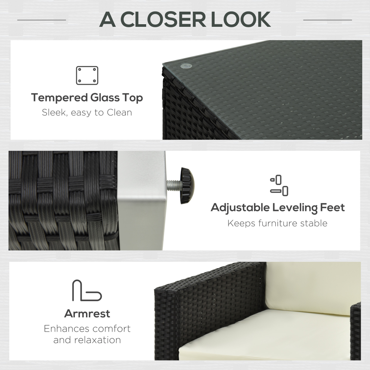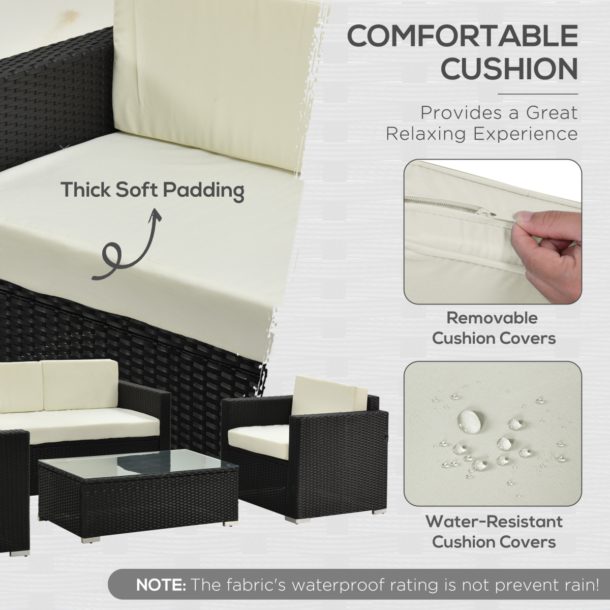 Steel-Black 4-Piece Rattan Sofa Set - Modern Outdoor Lounge