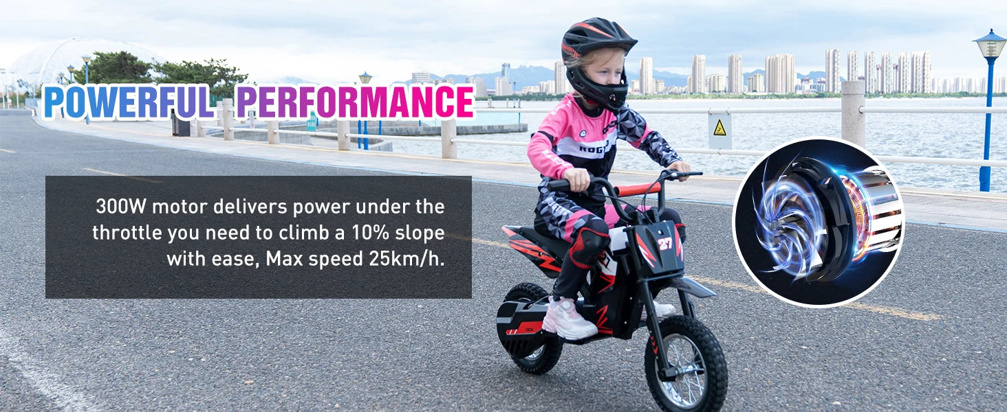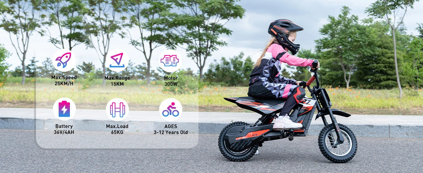 RCB Kids Electric Motorbike for Children, Up to 15.5 MPH & 9.3 Mile Range with 36V 4Ah Motor