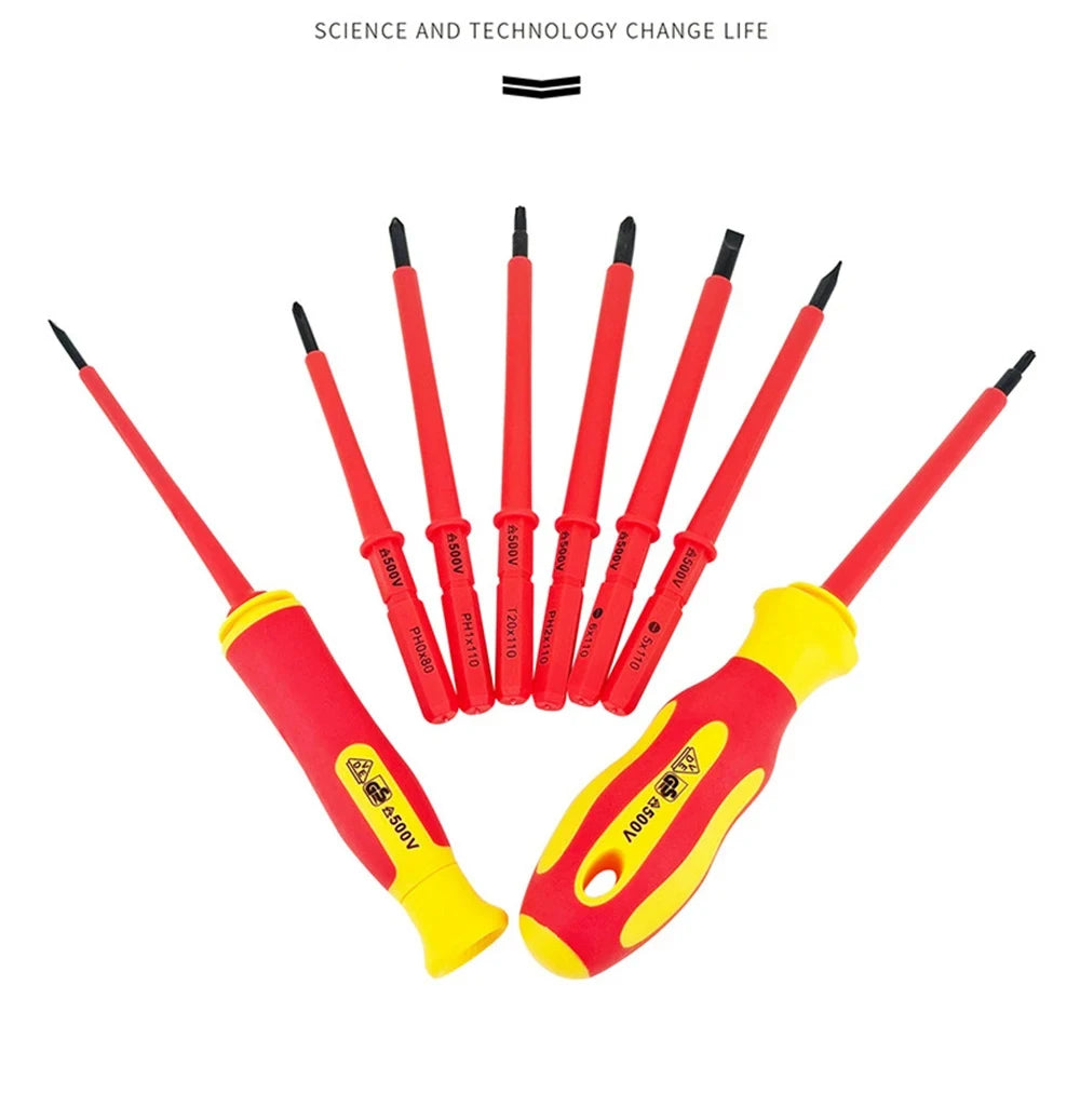 10Pcs Interchangeable Blade VDE Insulated Screwdriver Set with Case Magnetic 500V Home and Professional Use Electricians Tools