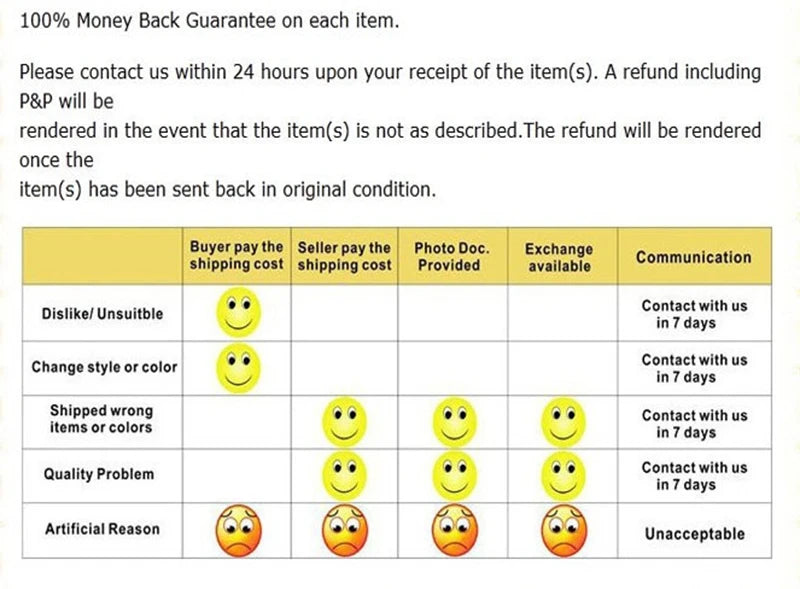 In addition to your right to cancel, if the goods you receive are faulty or not as described, you may have a right to a repair or replacement, or in some cases, a full or partial refund. You need to inform us within 3 days of receiving delivery if you have found any faults in the item prior to using it.