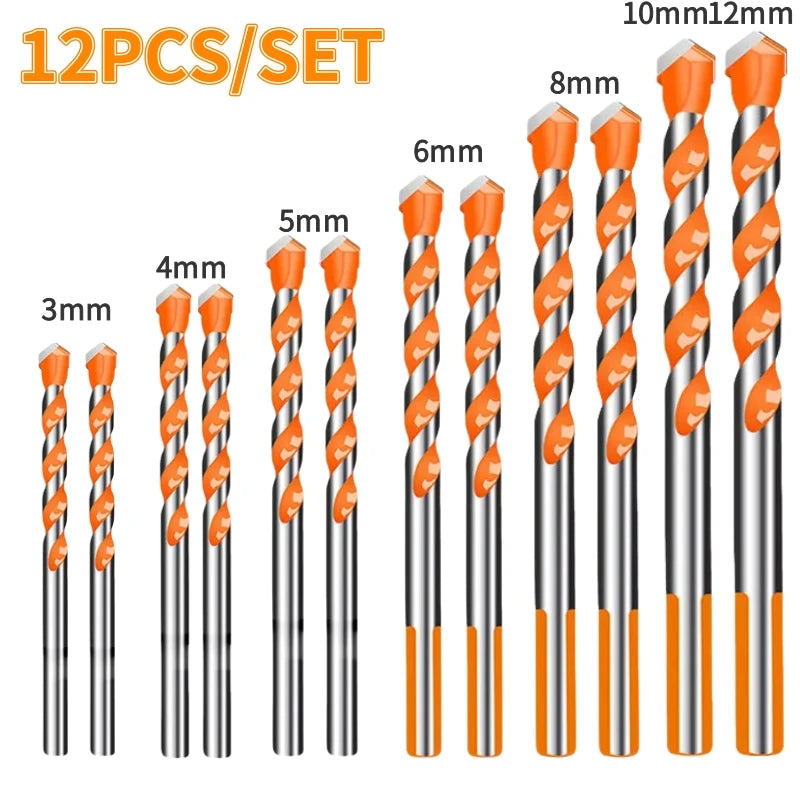16PCS Tungsten Carbide Masonry Drill Bit Set for Metal Steel Porcelain Ceramic Tile Concrete Brick Wood 3-12mm Drilling Tools