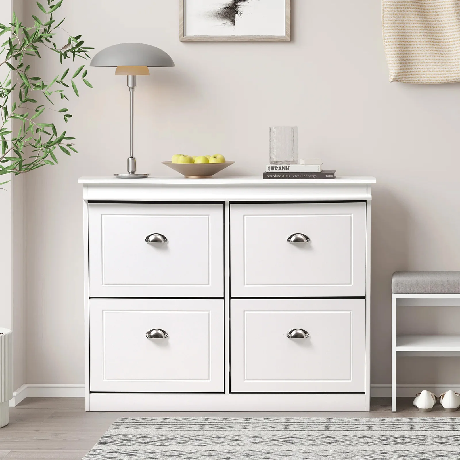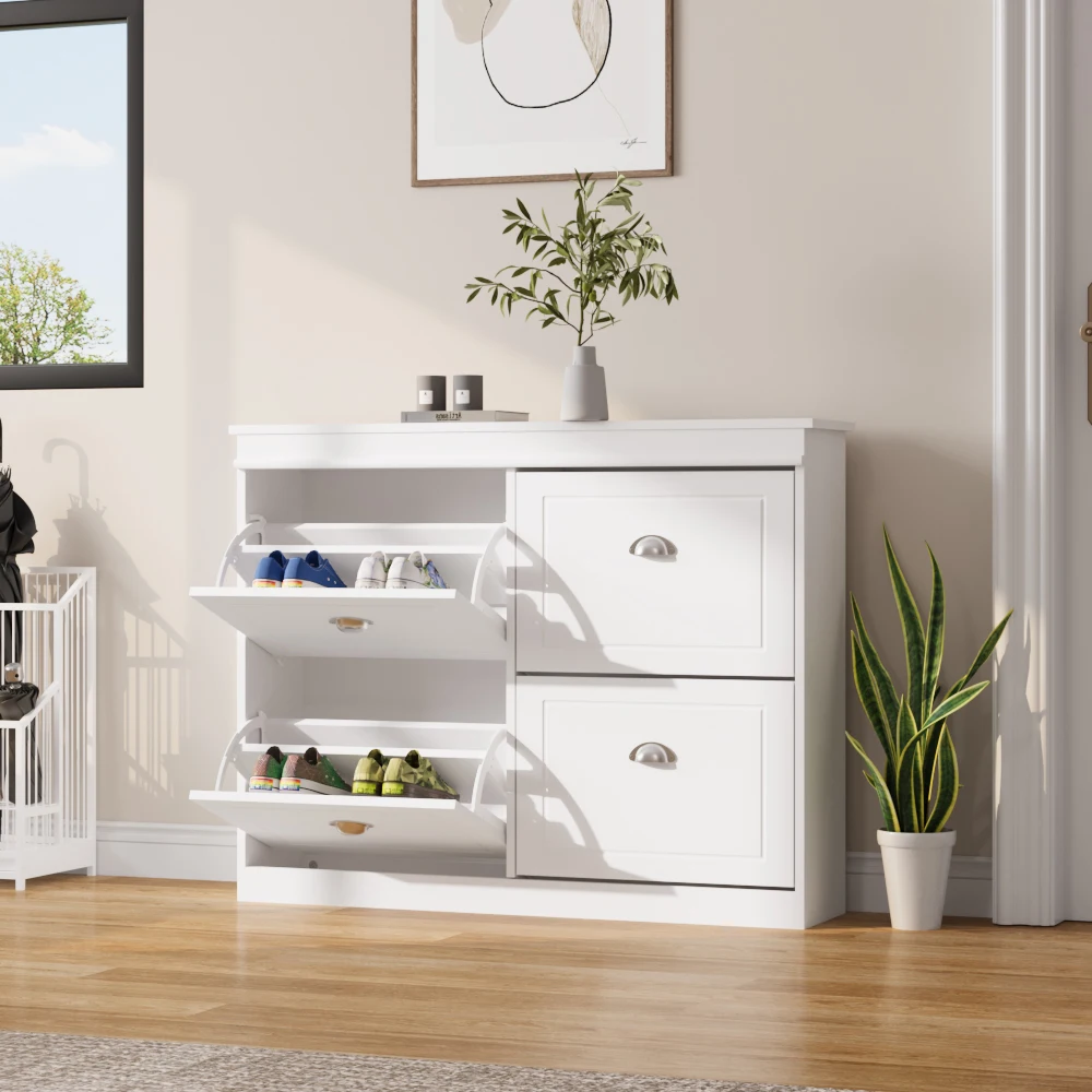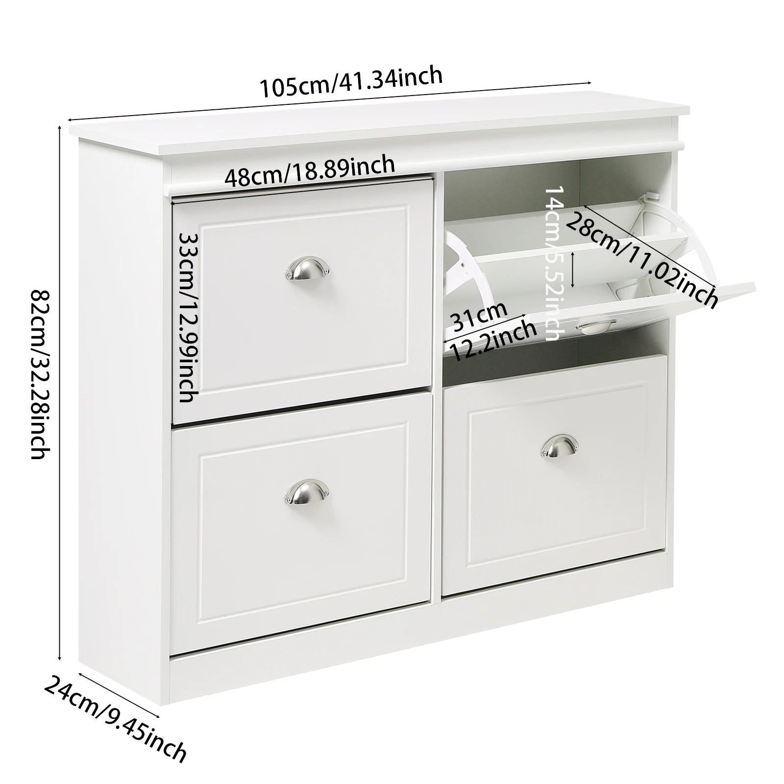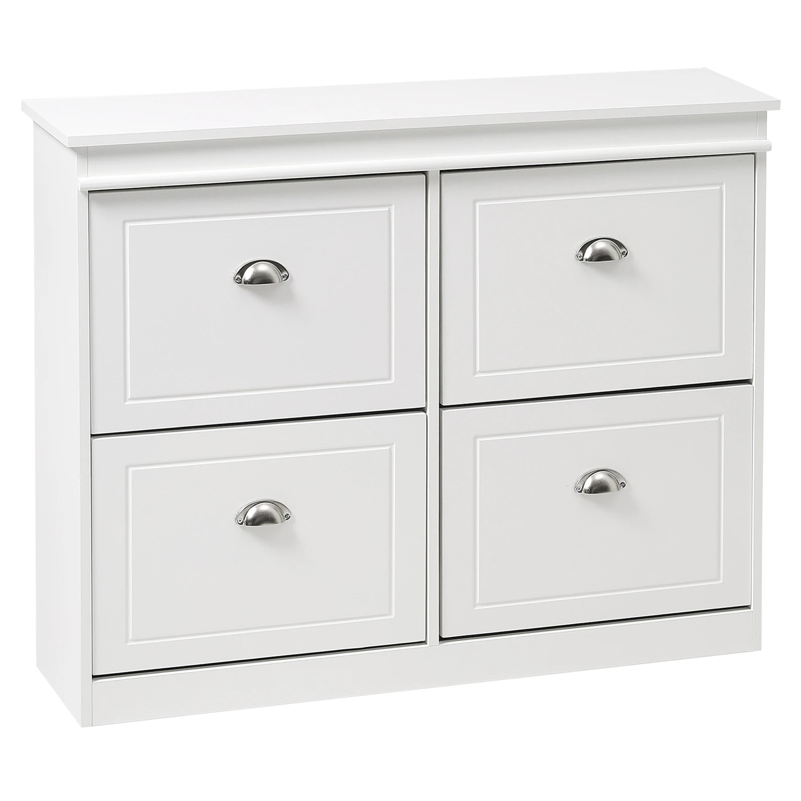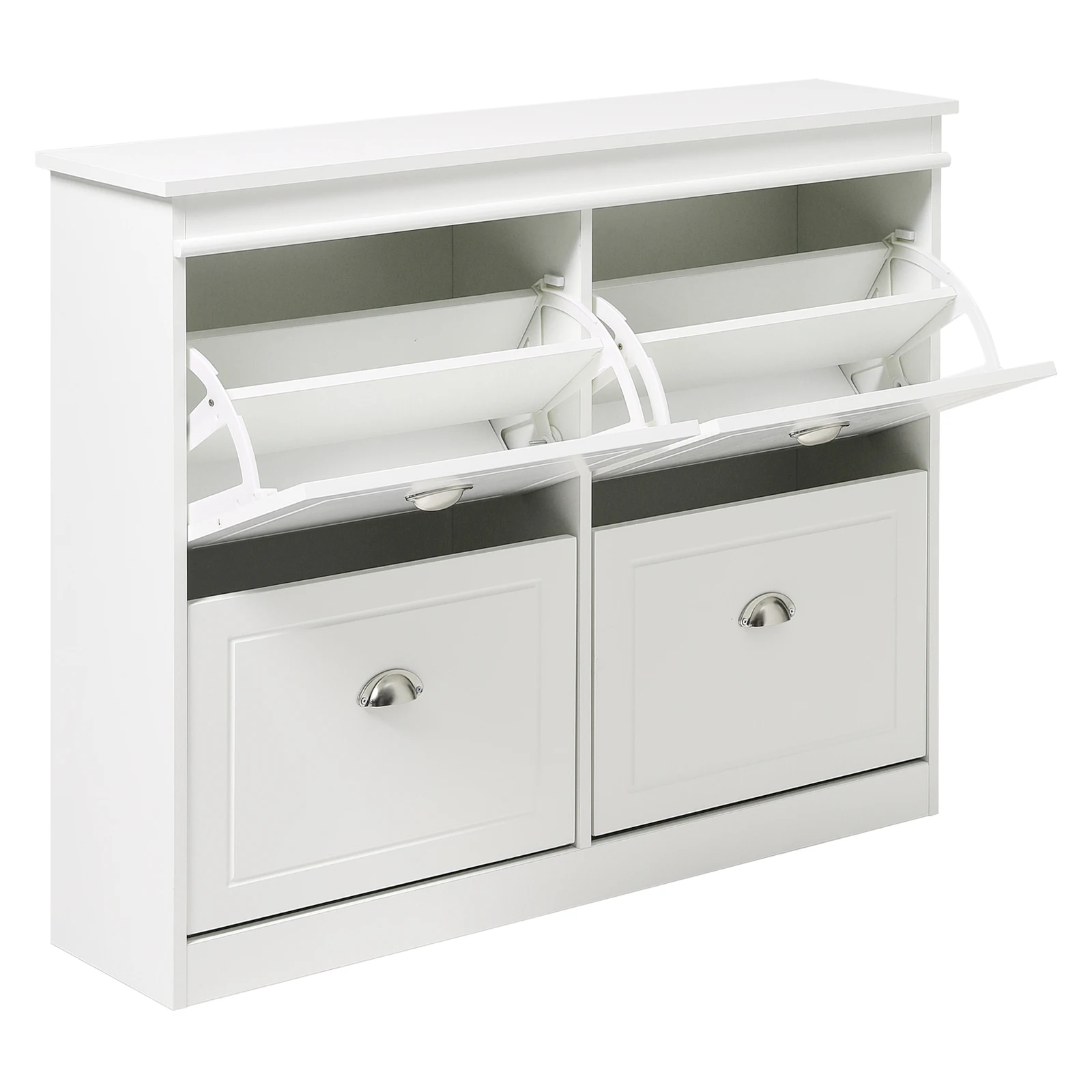 2 Tier White 4 Drawer Flip down Wooden Shoe Bench Cabinet