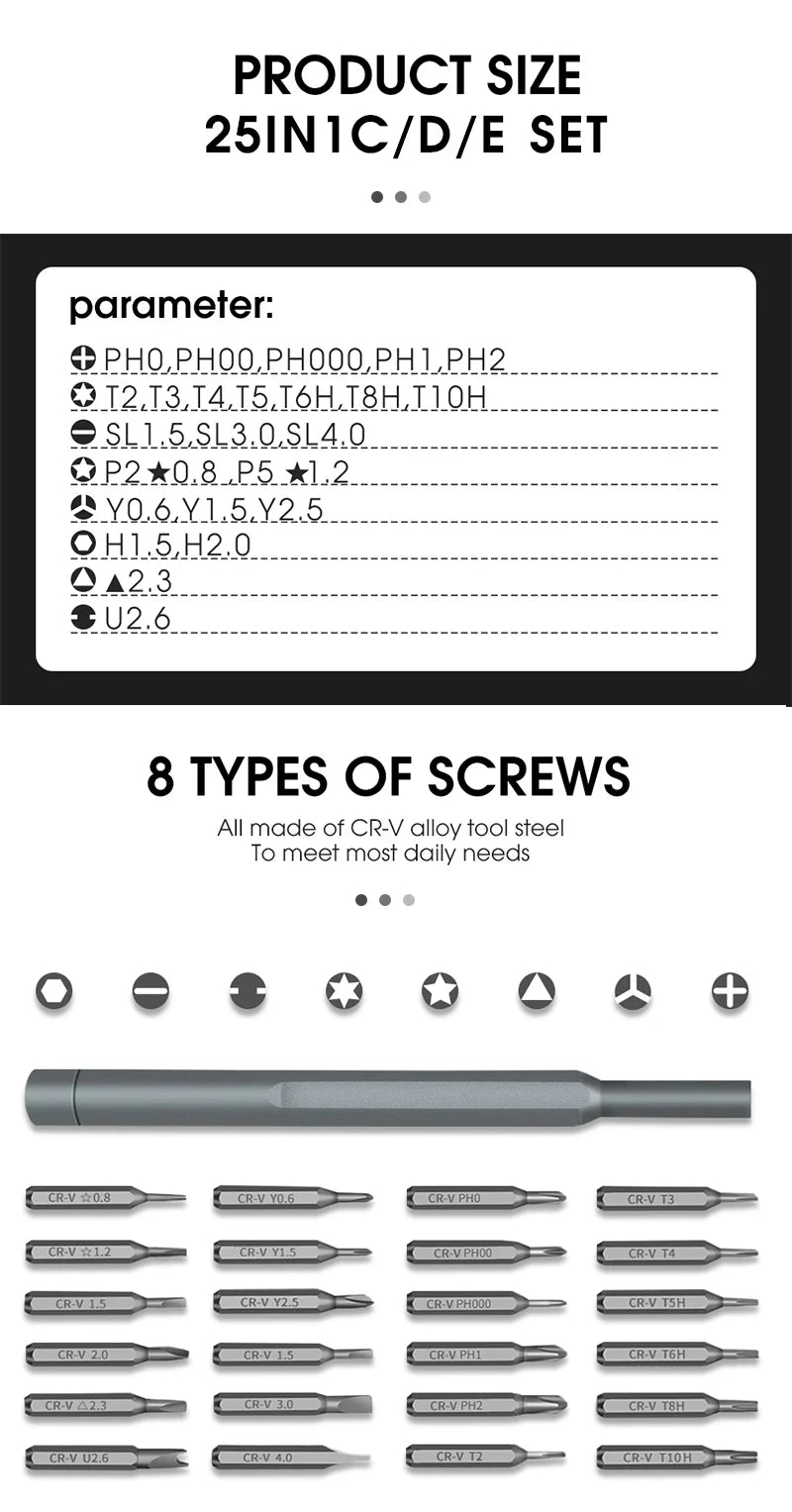25 In 1 Screwdriver Set Magnetic CR-V Bits Precision 28mm Phillips Slotted Torx With Handle Household Repair Kit Hand Tools