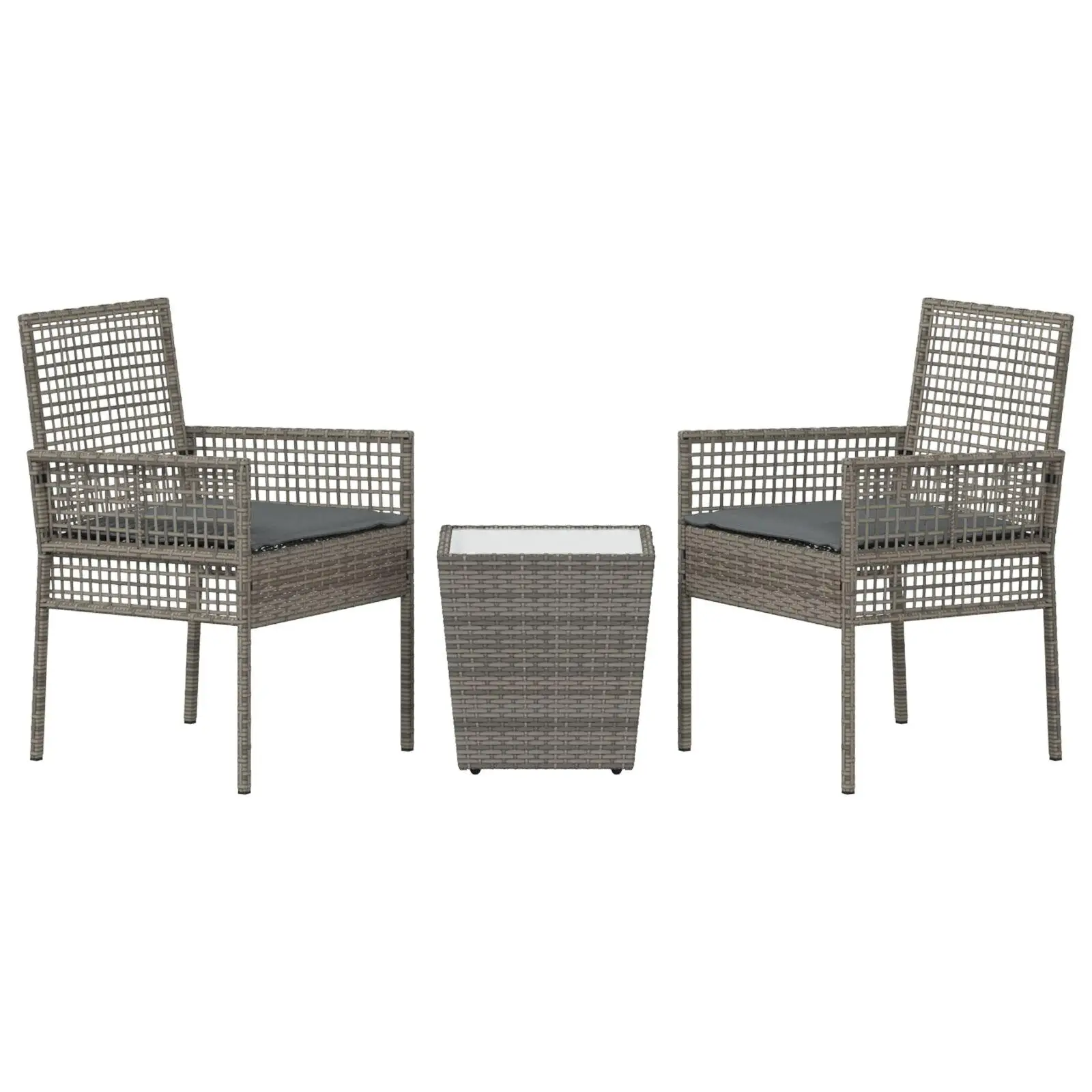 3-Piece Grey Poly Rattan Garden Bistro Set with Cushions for Outdoor Use