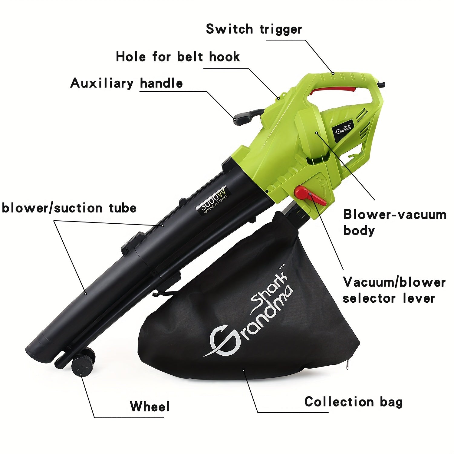 3000 W 3 in 1 Leaf Blower, Garden Leaves Vacuum Cleaner with Collection Bag (Green)