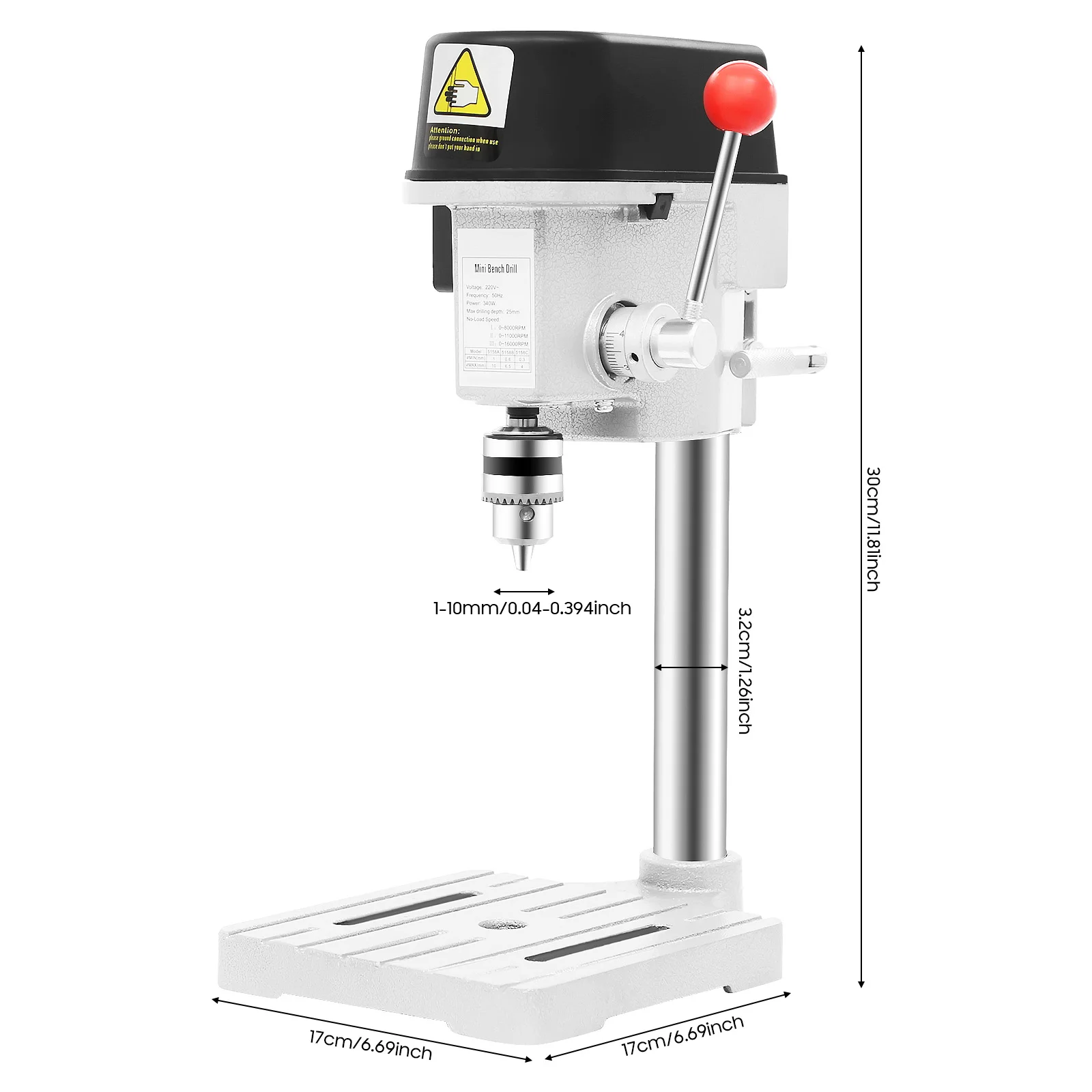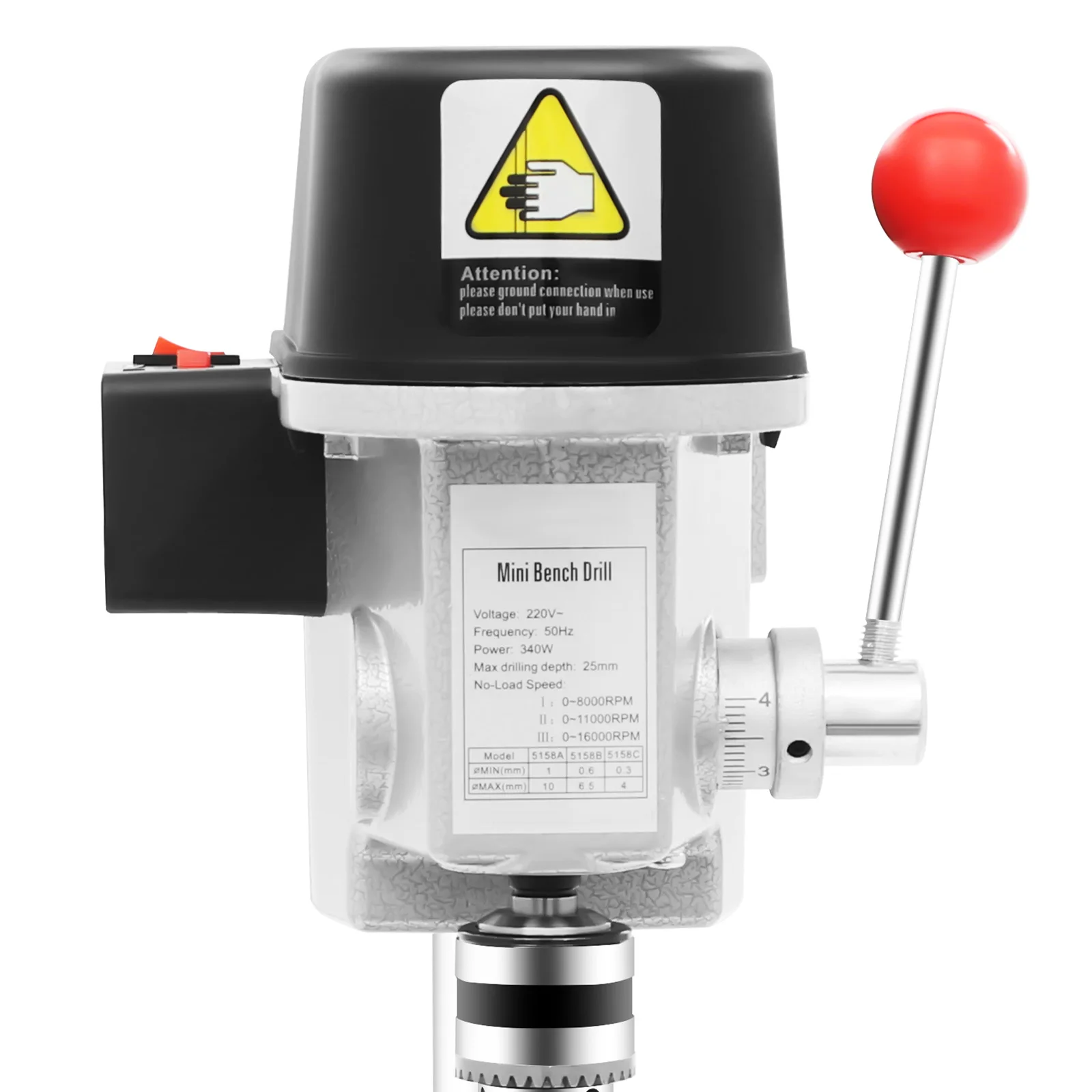 340W Portable Bench Drill Machine,5158A Adjustable Mini Bench Drill Press,110V/220V Corded Electric Drill,For Drilling Iron,Woo