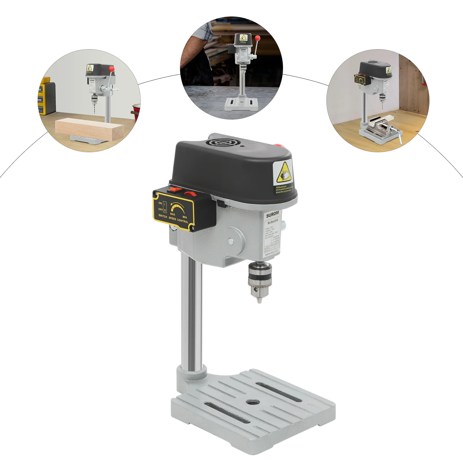 An excellent bench drill is an essential tool for hand-making or model building. Look at our portable bench drill press! With its powerful power, diverse speed options, and adjustable design, it has become a practical and cost-effective drilling tool. With its excellent performance and convenient design, it will be a useful addition to your workbench. Take it to make our creation work more convenient.