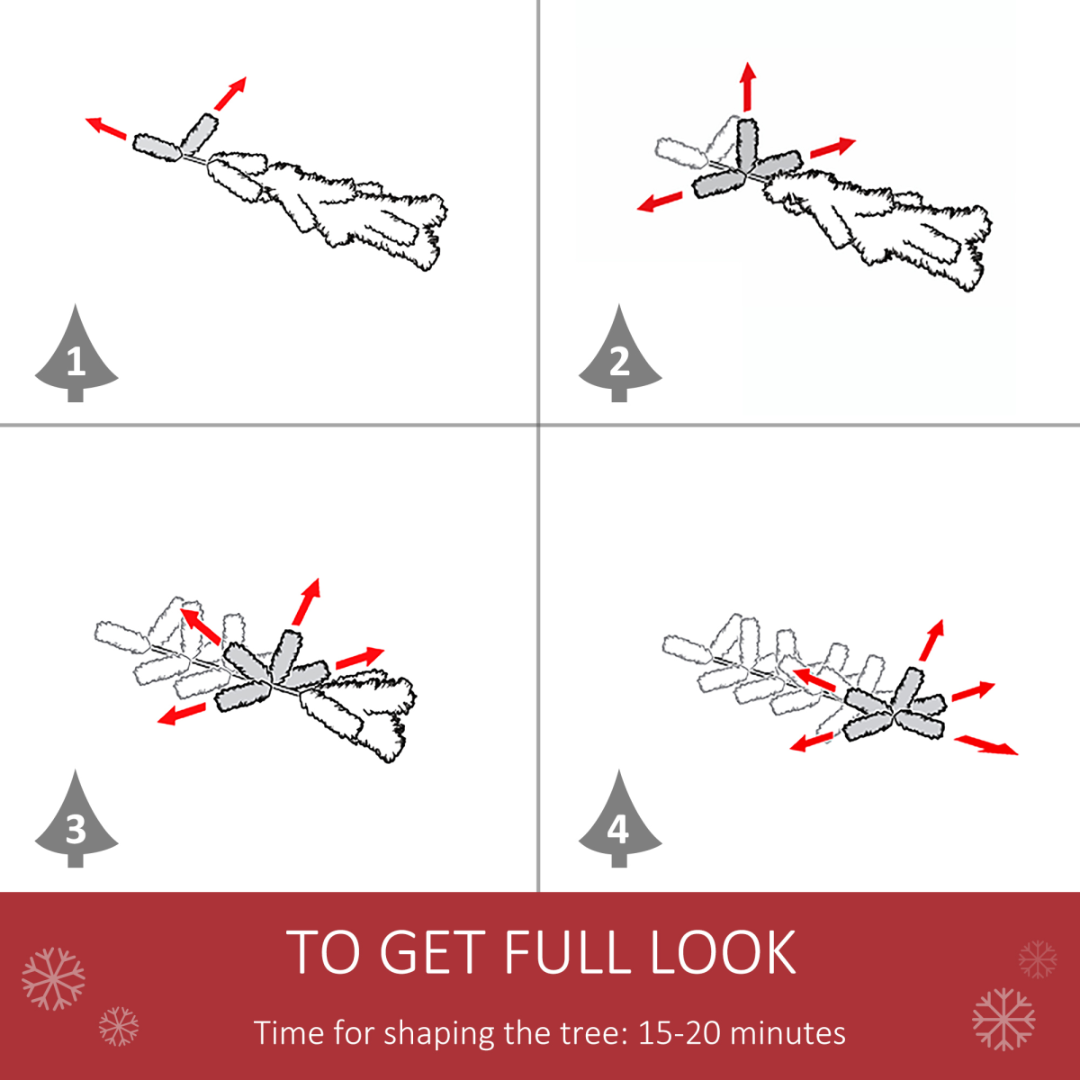 Made with flame-retardant materials for safety. Please note: even though the tree is flame retardant, avoid placing it near direct heat sources. Allow 15–20 minutes to gently spread and fluff the branches for a polished finish.