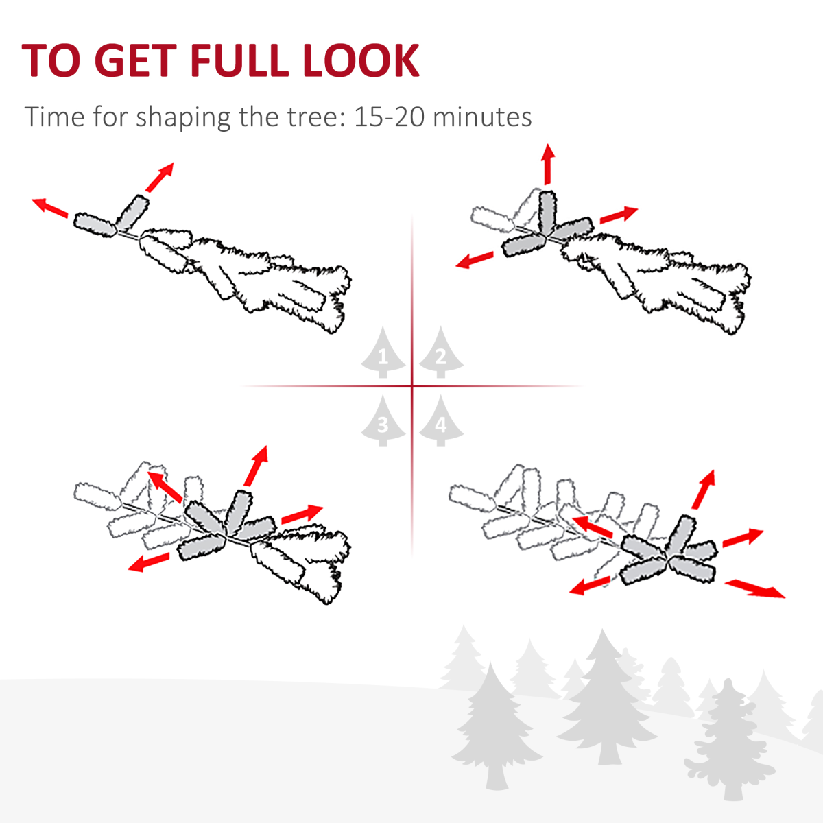 Decorate your space with a festive, wintery centerpiece. This 5-foot tree is prelit and features a snow-flocked finish for a frosted look, a green-and-white color palette, and 200 warm white LEDs to bathe your room in cozy light. With 348 plastic branches for a full, lush silhouette and a removable, foldable base for easy storage, it’s simple to set up and store. Assembly is required.