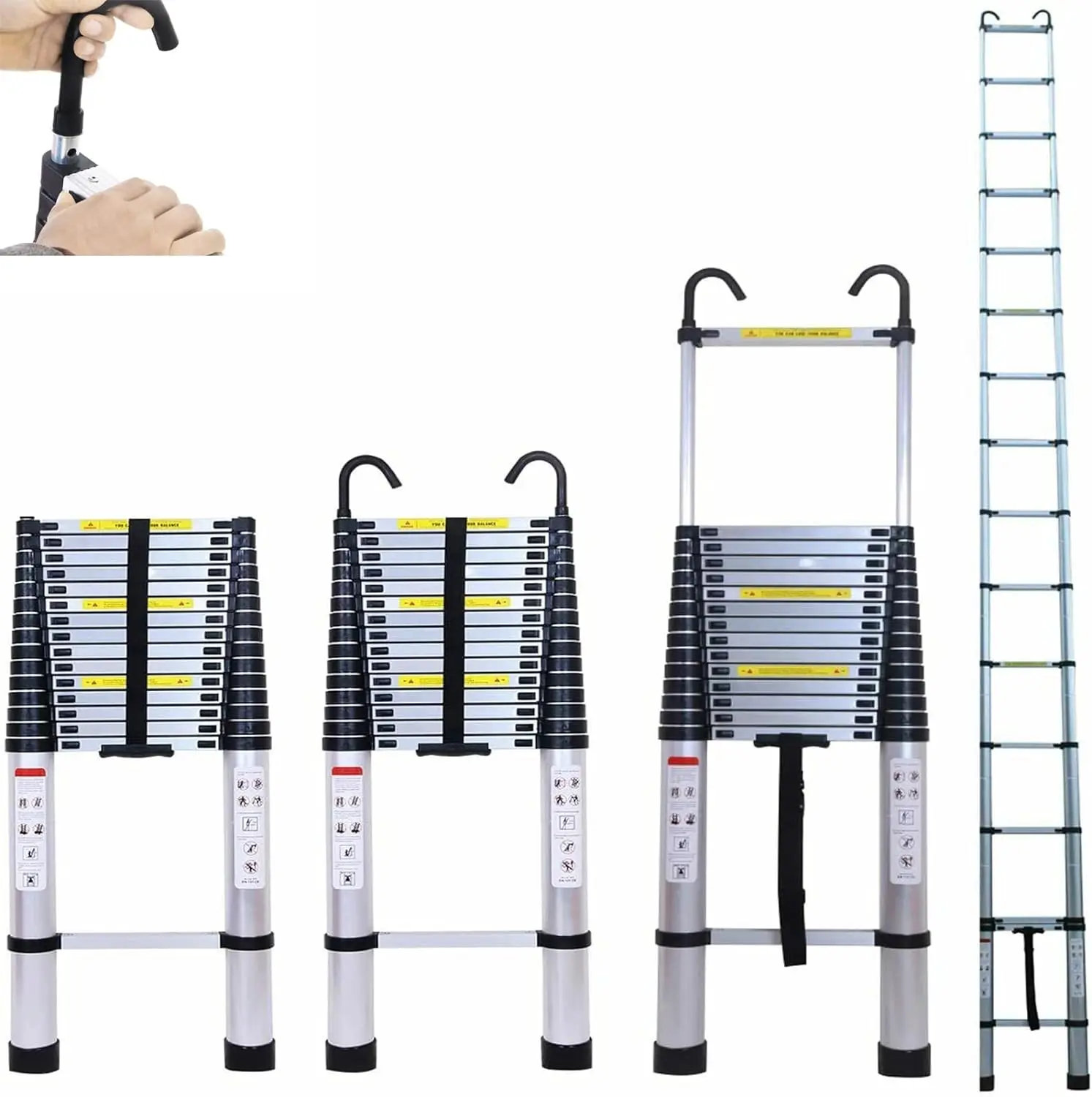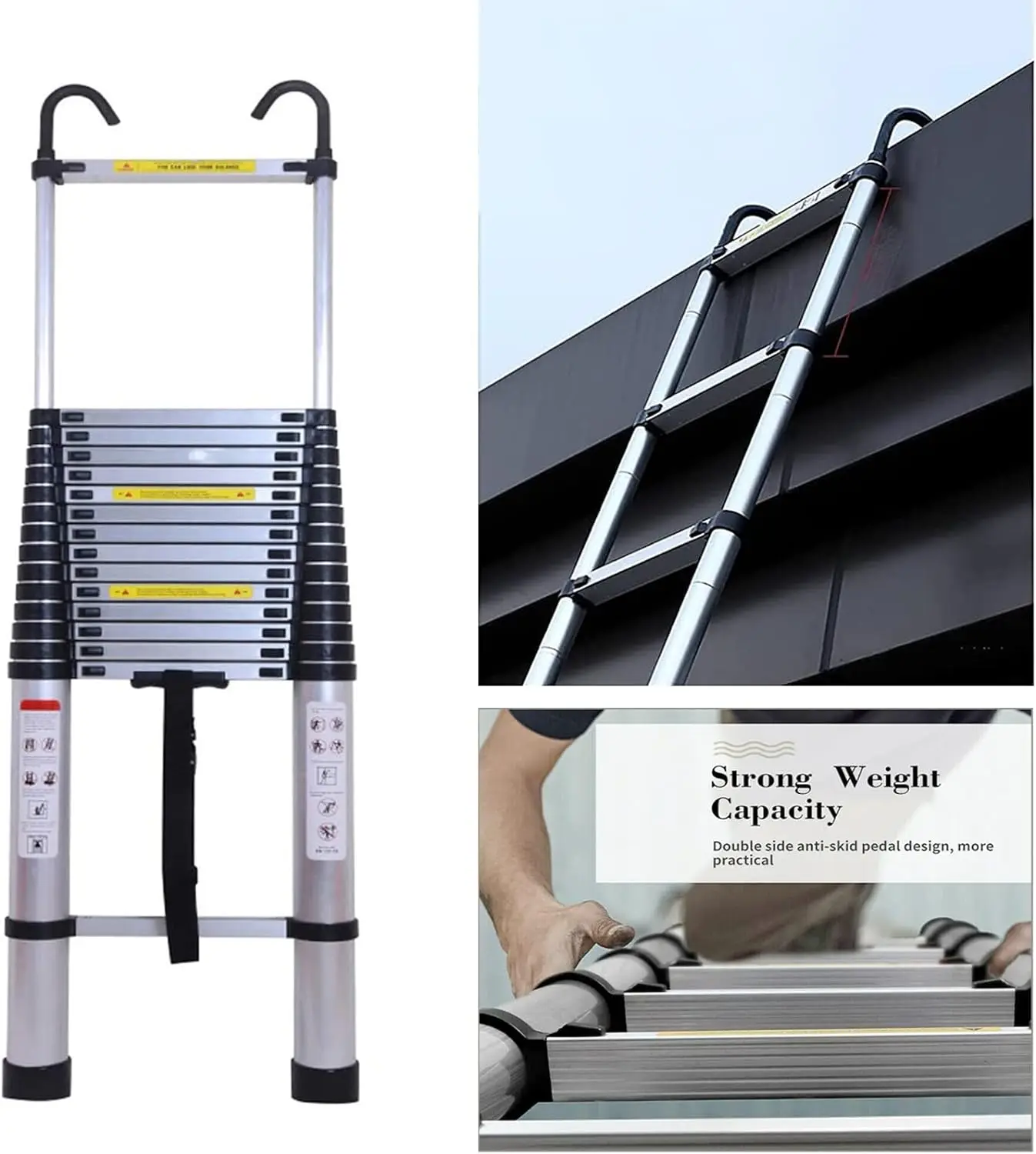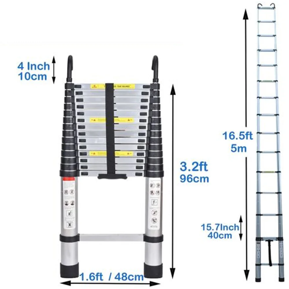 - The Telescopic ladder is made of high-quality aluminum alloy, light weight and easy to carry. corrosion-resistant, strong and durable. It is an ideal tool to help you draw walls, replace bulbs, clean windows, clean drains, repair roofs, etc. Suitable for home and business use. Telescopic ladder makes your life easier.