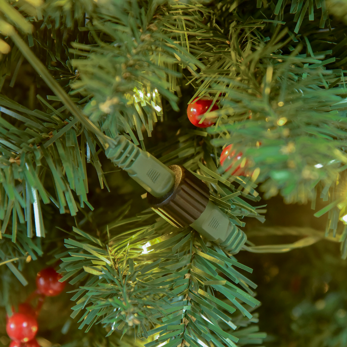 7ft Prelit Pencil Christmas Tree with Warm White LEDs, Green & Red Berry