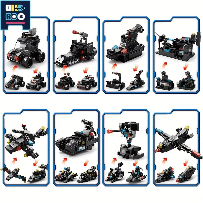 8 In 1 City Series Building Blocks 3 Changes SWAT Station Assembled Car City Machine Helicopter Robot Toys For Children