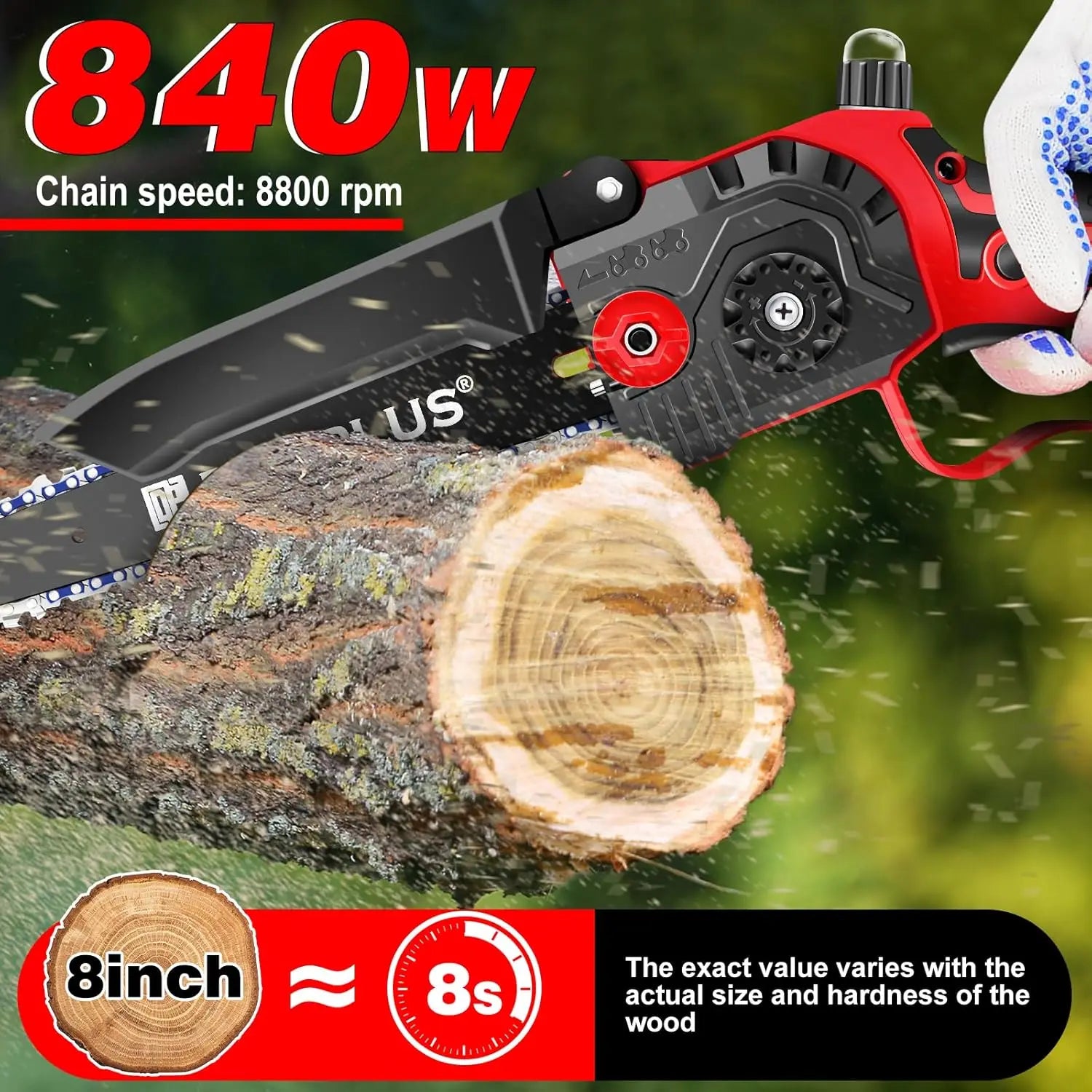 8 inch Brushless Mini Chainsaw 21V Cordless Handheld for Pruning Trees and Branches Wood Cutting with 4000mAh Battery