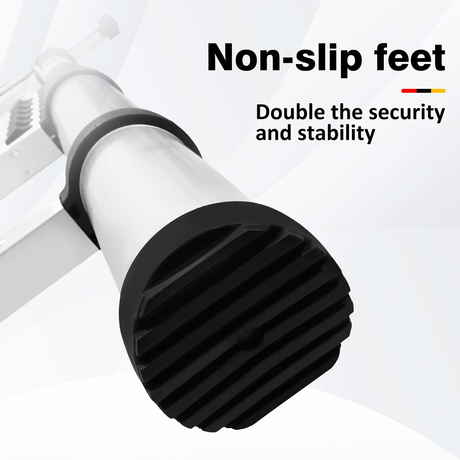 【Durability & Stability】Telescopic ladder is made of heavy-duty stainless steel frame, which is better load bearing and more sturdy than aluminum ladder. Wide rungs and non-slip angled feet with a stabilizer bar amplify safe and stable.
