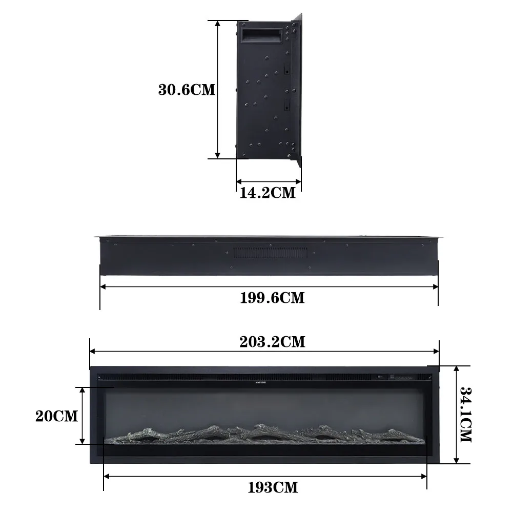 Fireplace Dimensions: 177.8cm W x 14.2cm D x 34.1cm H or as shown