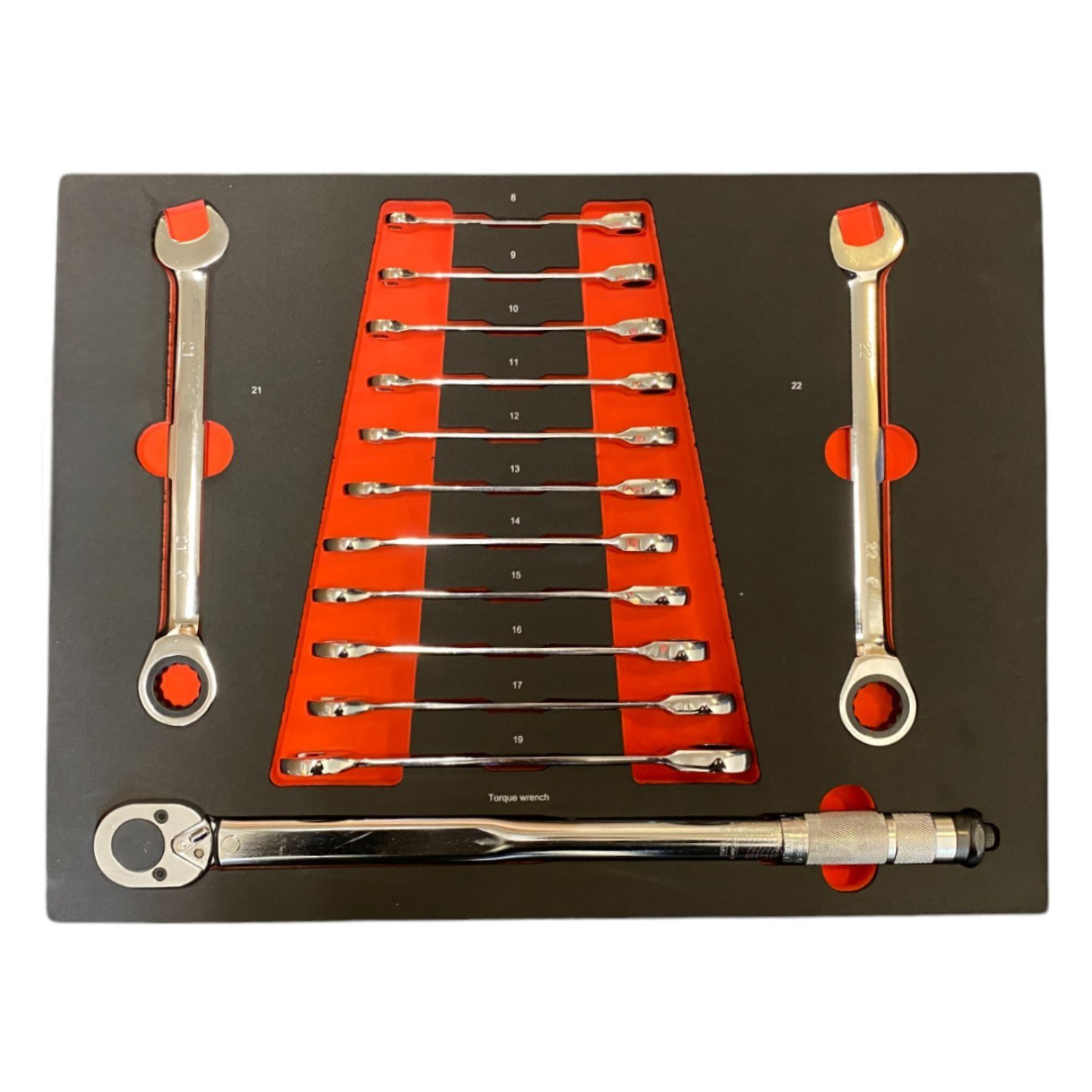13 x Ratchet Spanners: 8-9-10-11-12-13-14-15-16-17-19-21-22mm