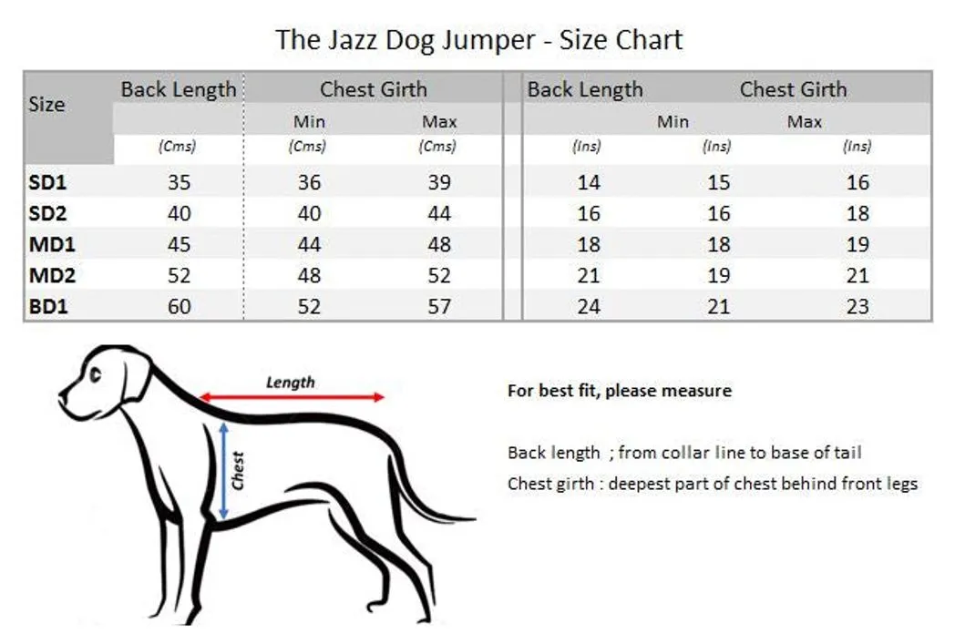 This jumper is particularly suited for longer, narrower chested dogs, offering comfort without compromising on style.