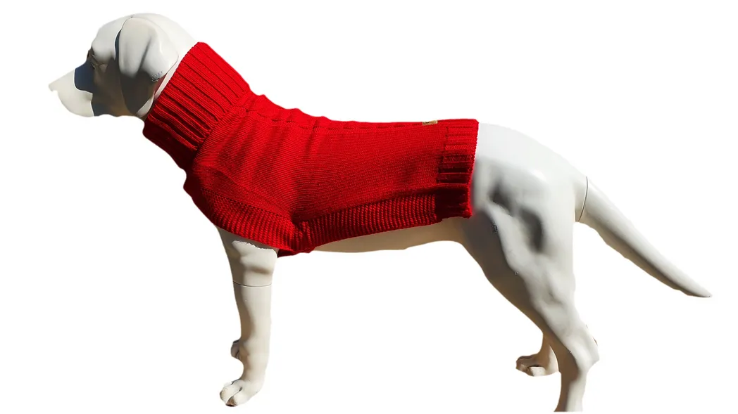 Chic Red Jazz Dog Jumper: Contemporary Cableknit for Style & Comfort