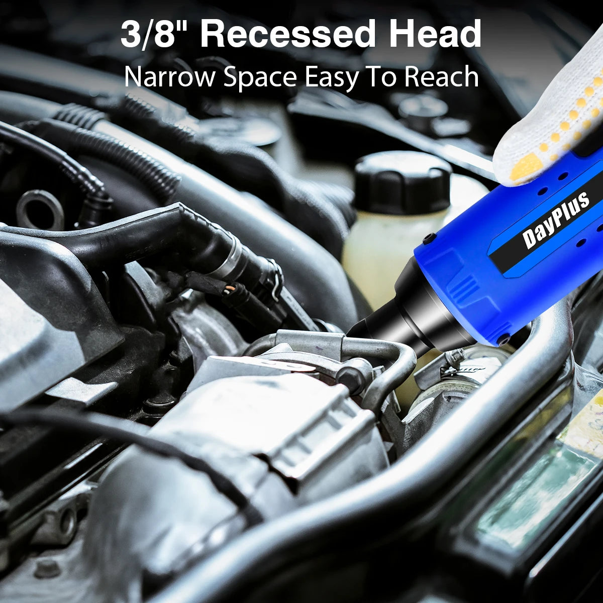 【Flexible and Convenient】This Power Ratchet Wrench 3/8" compact head makes it easy to reach any tiny and narrow working environments.Compared to other short head ratchet wrenches, it can protect your knuckles effectively
