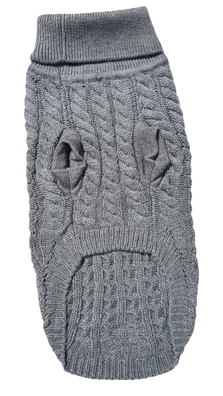 Cozy Cableknit Dog Jumper - Stylish Grey Knit for Your Furry Friend