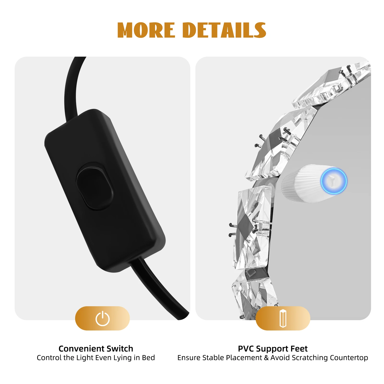 Long Power Cord&Convenient Switch: The 5.91ft power cord with an on/off switch is long enough to allow you to turn on/off the light even when you are lying in bed.