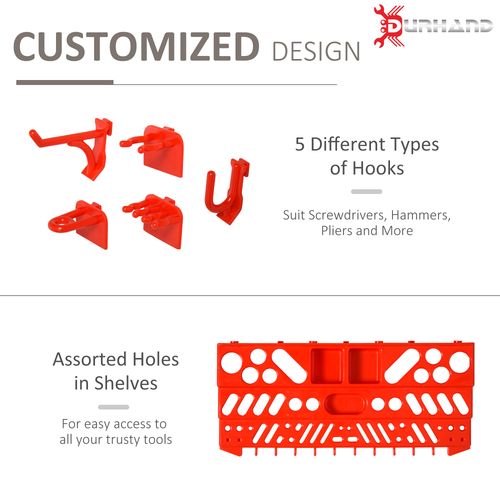 DURHAND PP Wall Mounted Garage Tool Organiser Unit Grey/Red