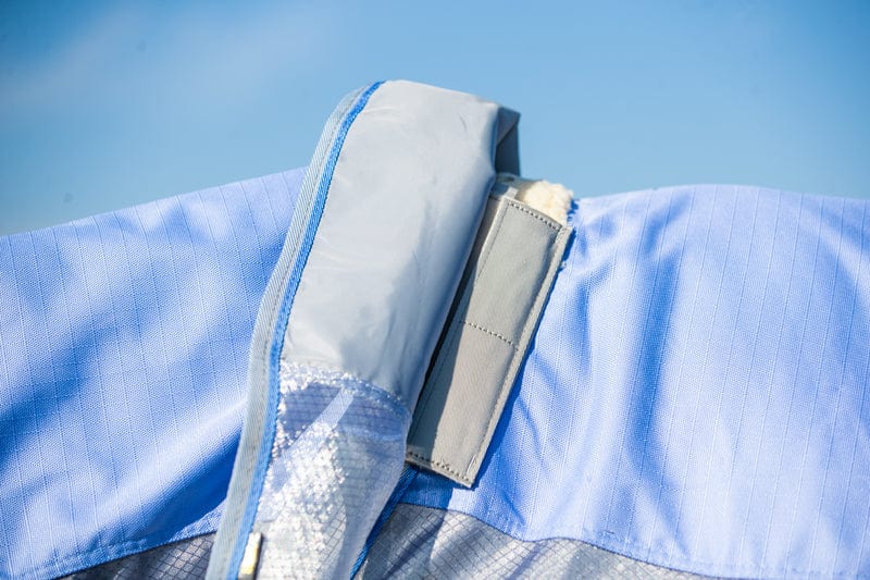 A superb design from Swish combines turnout and mesh materials. The turnout section is a ripstop 1200denier fabric which provides protection from those unpredictable rain showers. The lower section is lightweight and breathable nylon offering durability, air flow, sun and fly protection. A longer cut, detachable neck cover ensures your horse gets maximum coverage even when grazing and is secured with double locking Velcro straps. This new rug is designed to protect your horse from insects on showery/cooler days in summer whilst also keeping them dry. It will also be great for over night use for horses that live out 24/7, the turnout part will keep the chill off and the lower section will protect from flies whilst also stopping the horse becoming too warm. The neck is detachable and is lined along the mane to prevent any rubbing.