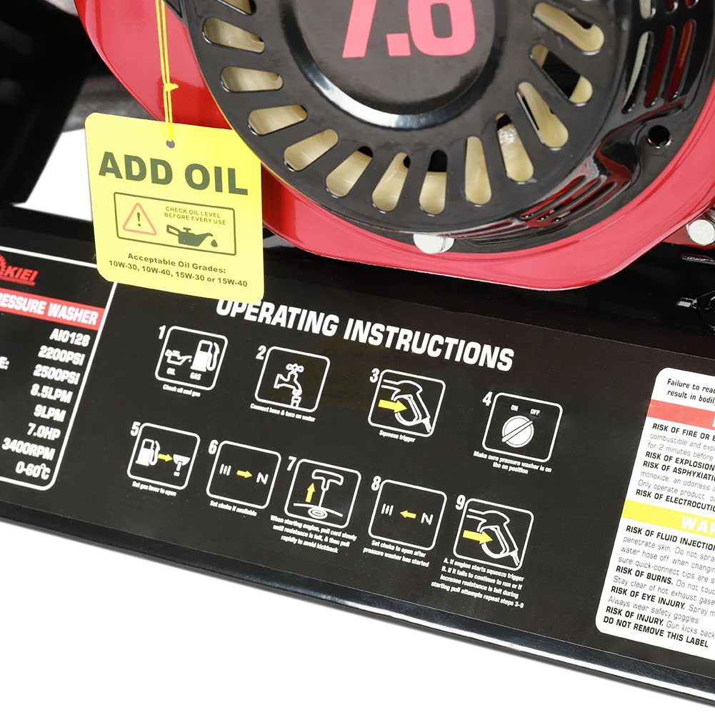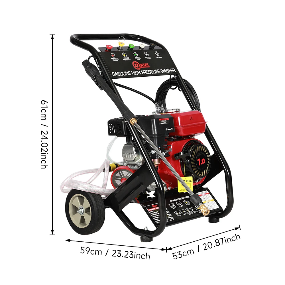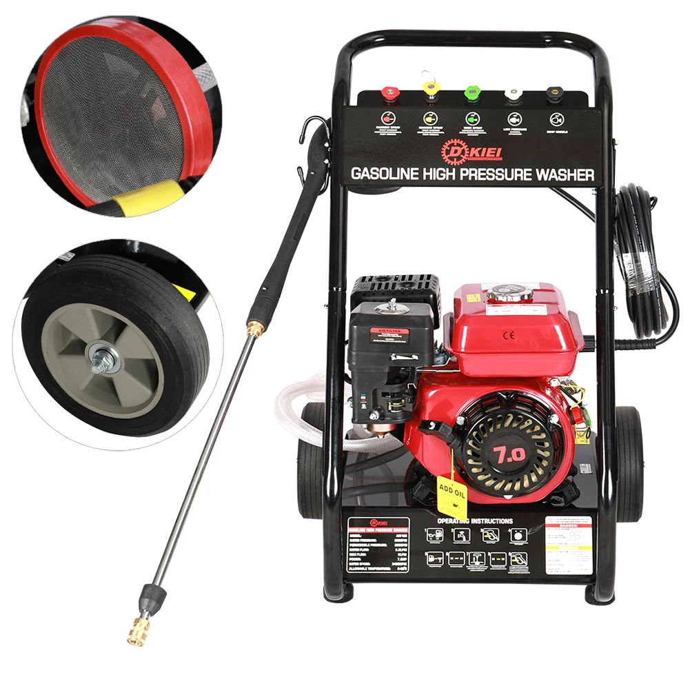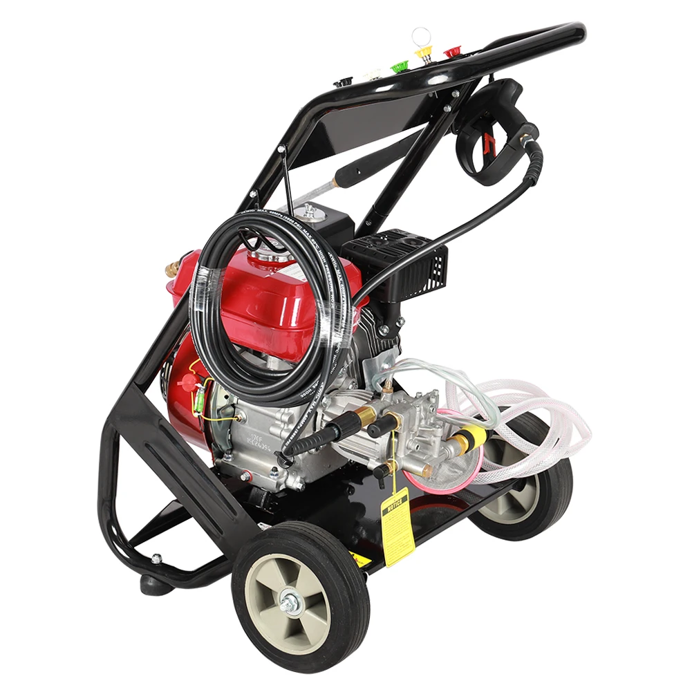 Heavy-Duty Metallic Pump Petrol Pressure Washer with 5 Quick-Connect Nozzles, Built-In Wheels & Large Tank for Cars
