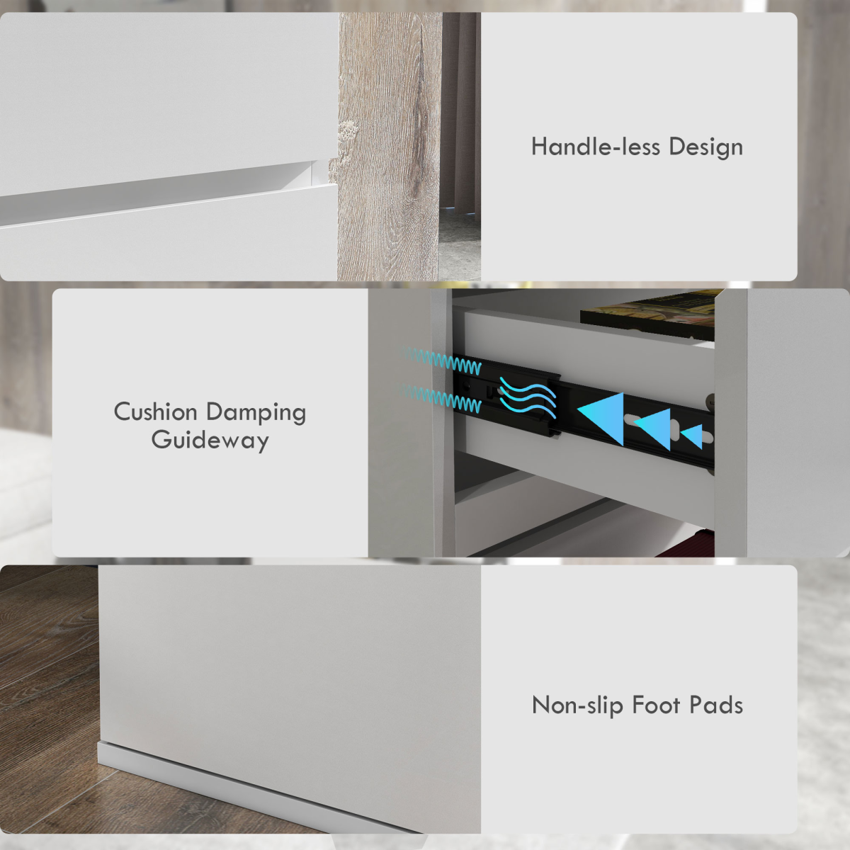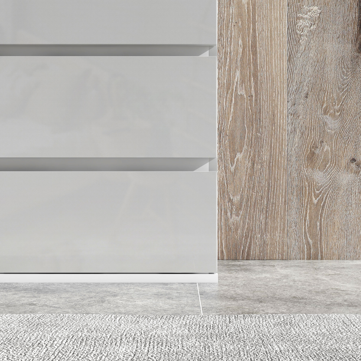 The sleek high gloss finish not only enhances the visual appeal but also allows for effortless integration with any existing decor. The versatile color palette ensures that this unit complements a wide range of interior styles, making it a fantastic addition to your home. Experience the innovative handle-less design: a simple push-click mechanism allows for smooth opening and closing of each drawer, providing both convenience and modern elegance.