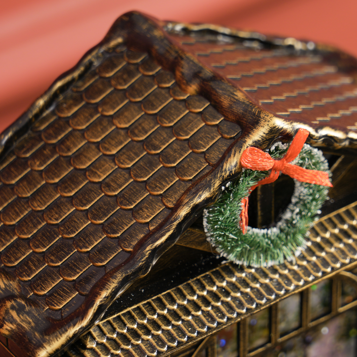 Christmas Snow Globe Lantern with Lights - Bronze Tone