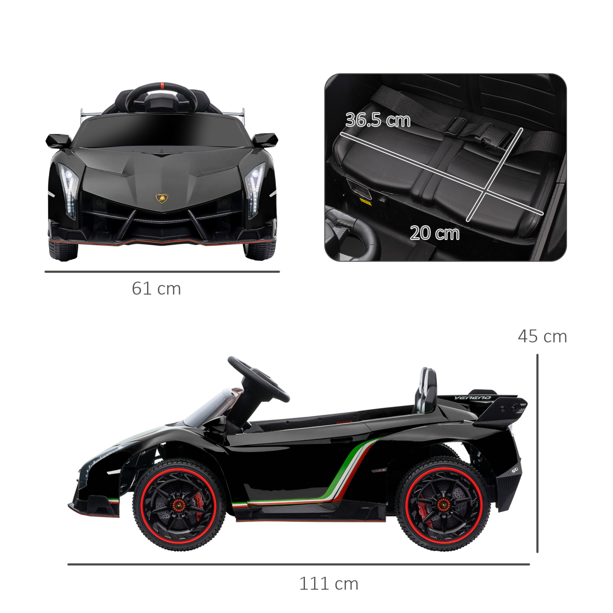 Lamborghini Veneno Kids' Electric Ride-On Car with Remote - Black