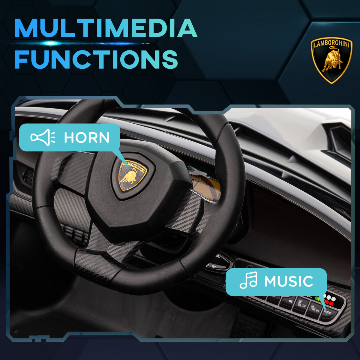 Experience the thrill of driving with realistic functions such as music, a functioning horn, and illuminated headlights that enhance the excitement of imaginative play. Your child's safety is our top priority: wide wheels, a shock-absorbing suspension system, and a secure seatbelt provide peace of mind for parents. Plus, with a convenient remote control, adults can easily supervise or take the wheel, ensuring that everyone can join in on the fun.