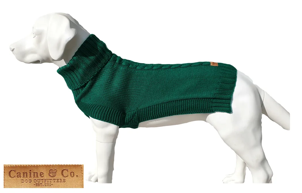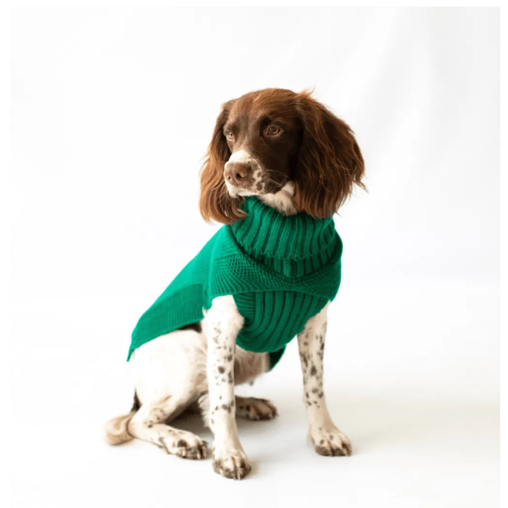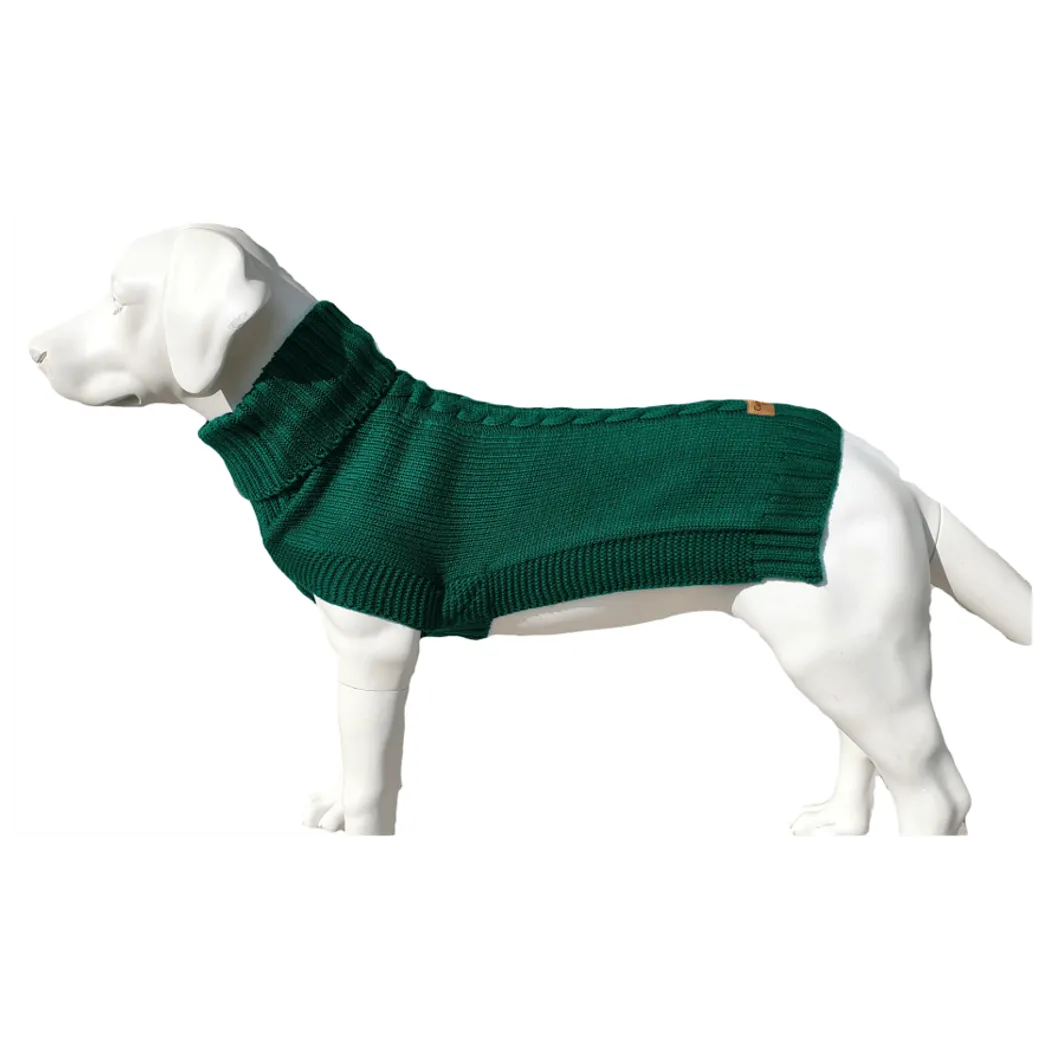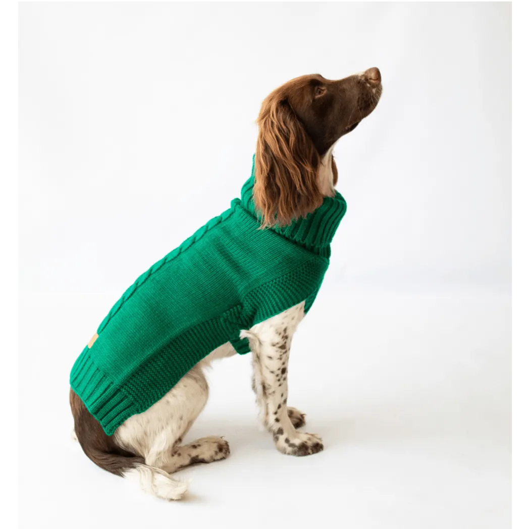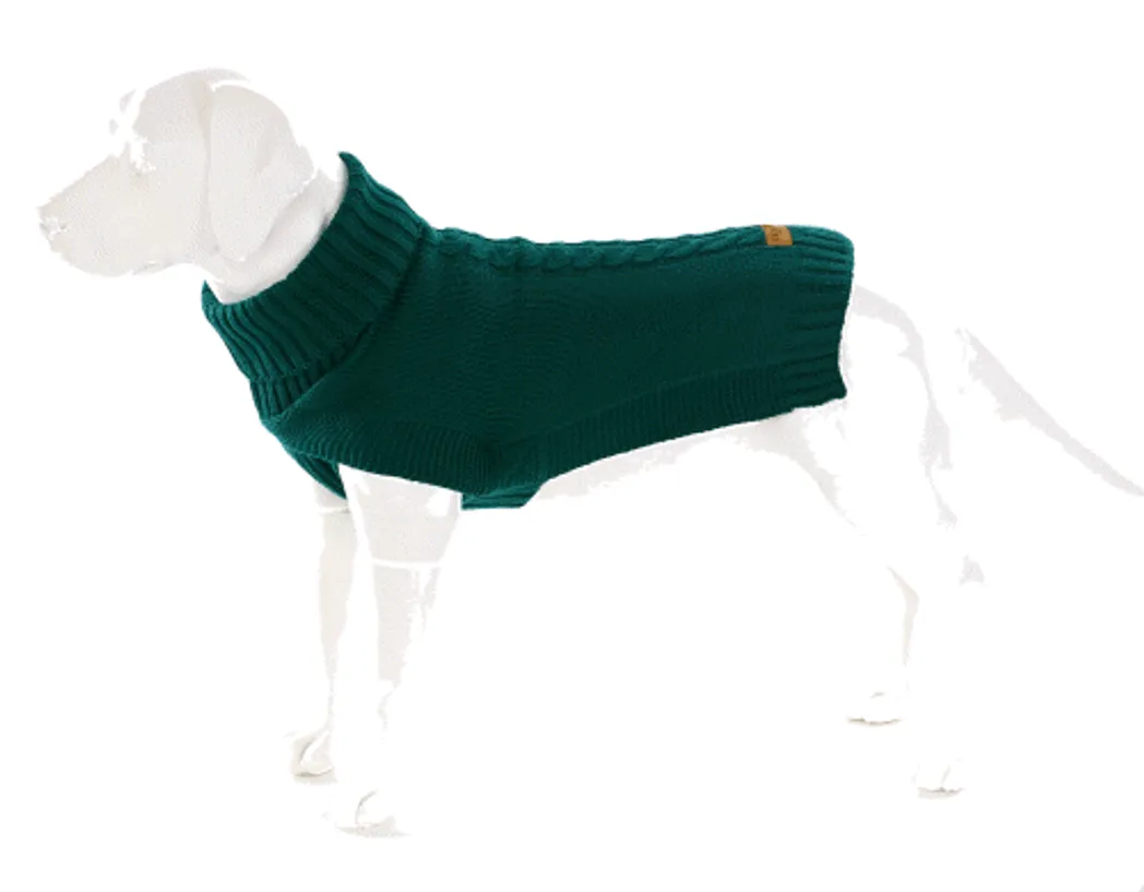 Jazz Dog Jumper: Fashionable Green Cableknit Sweater for Stylish Pup Warmth