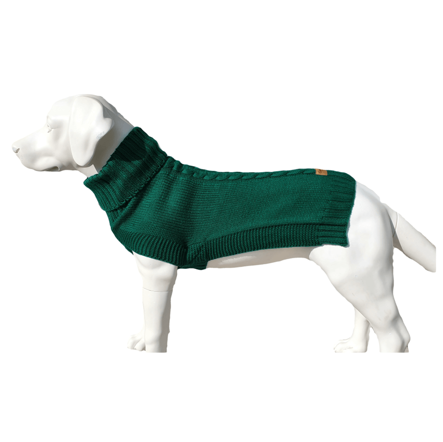 Keep your furry friend warm and stylish with The Jazz Dog Jumper in Green! This contemporary Cableknit design combines functionality with fashion, making it a must-have for your pup's wardrobe.