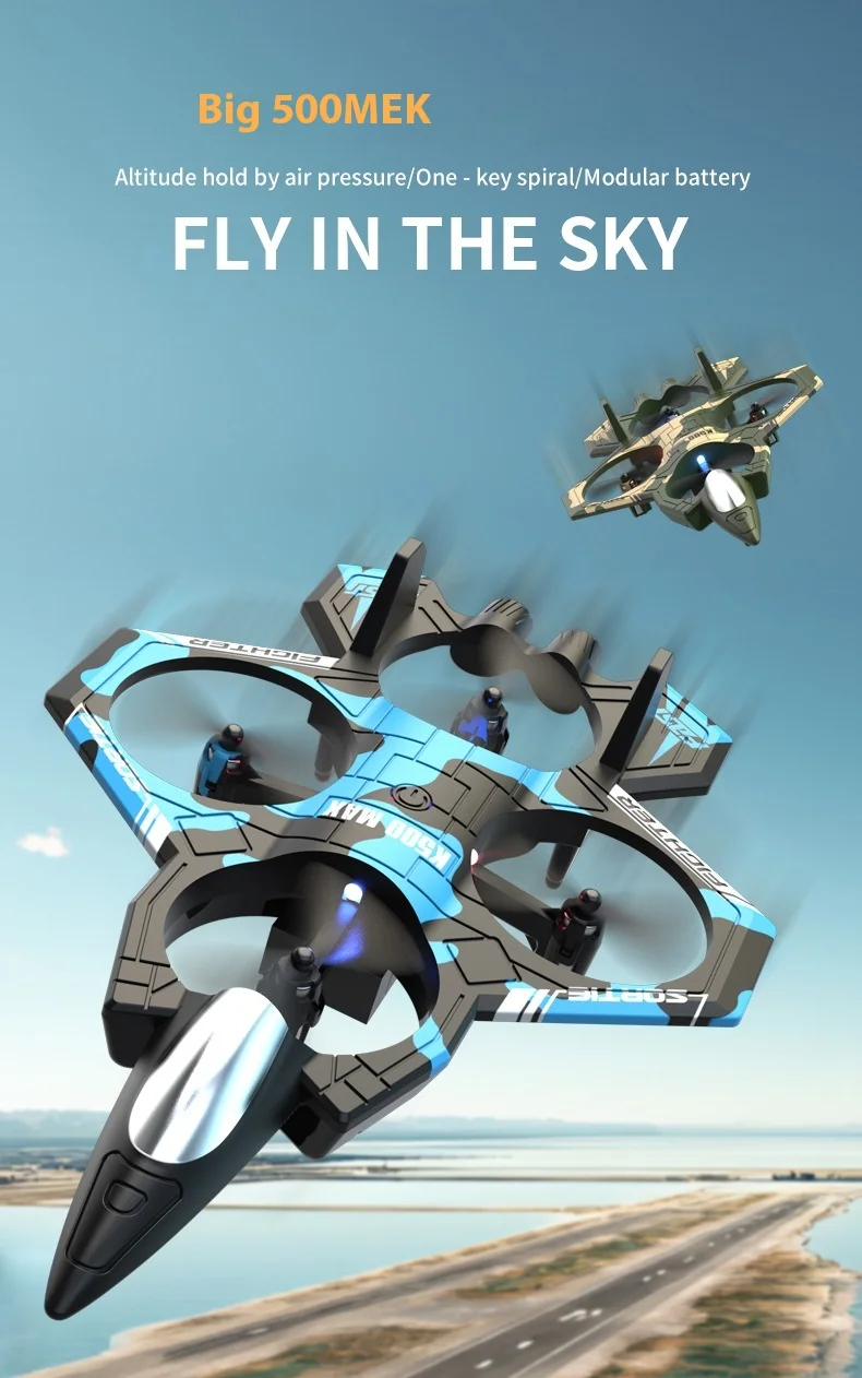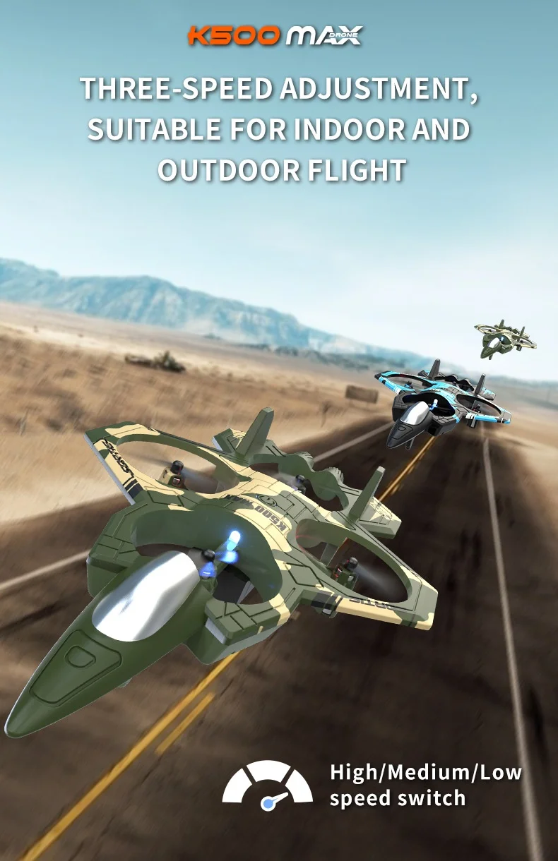 K500max Fighter Jet Quadcopter Drone Rolling Stunt Lights Rc Airplane
