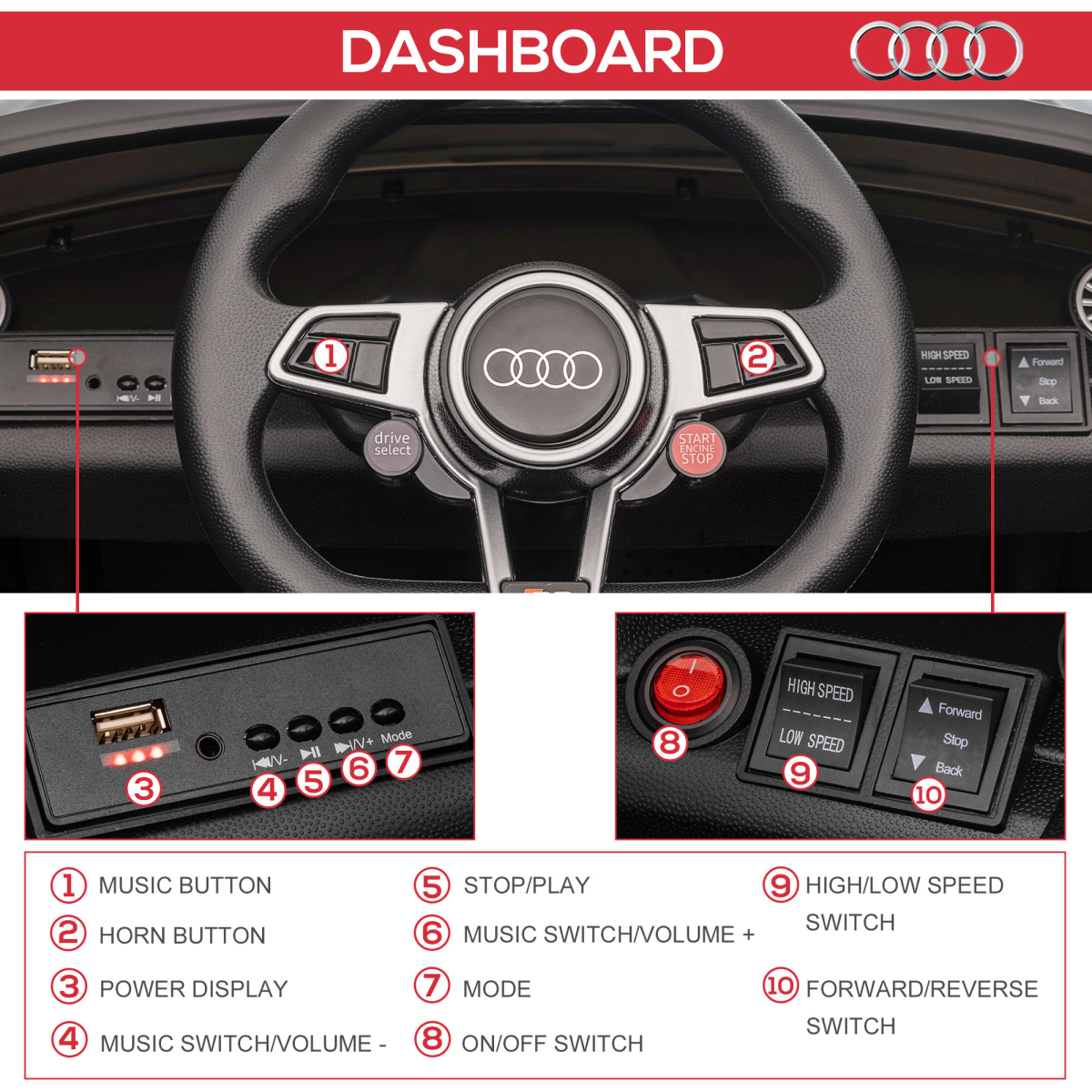 Licensed Audi TT Ride-On Car for Kids 12V Remote Control - Black