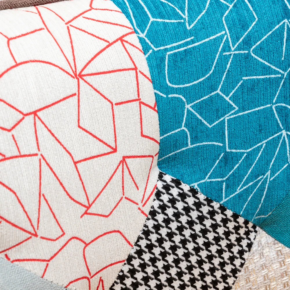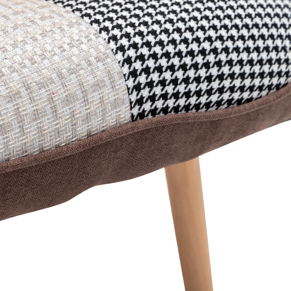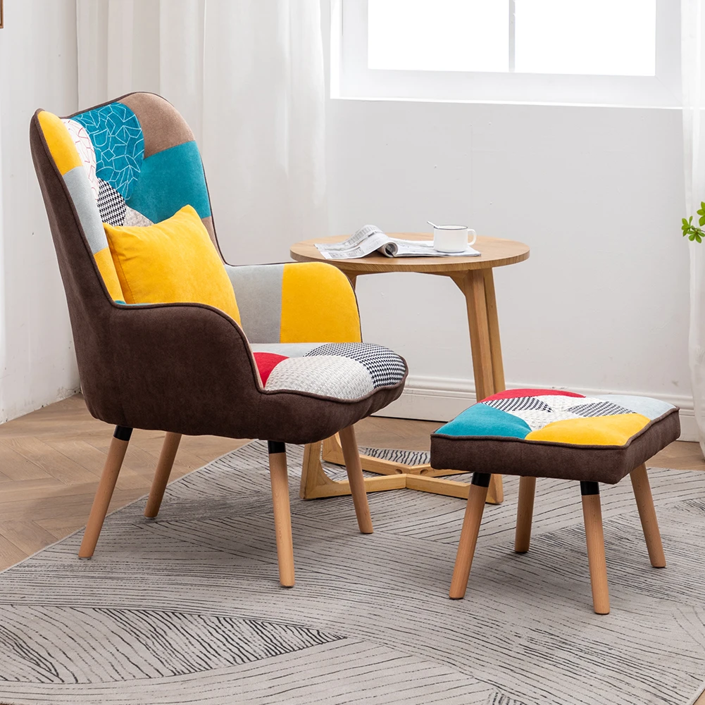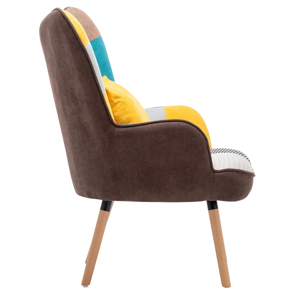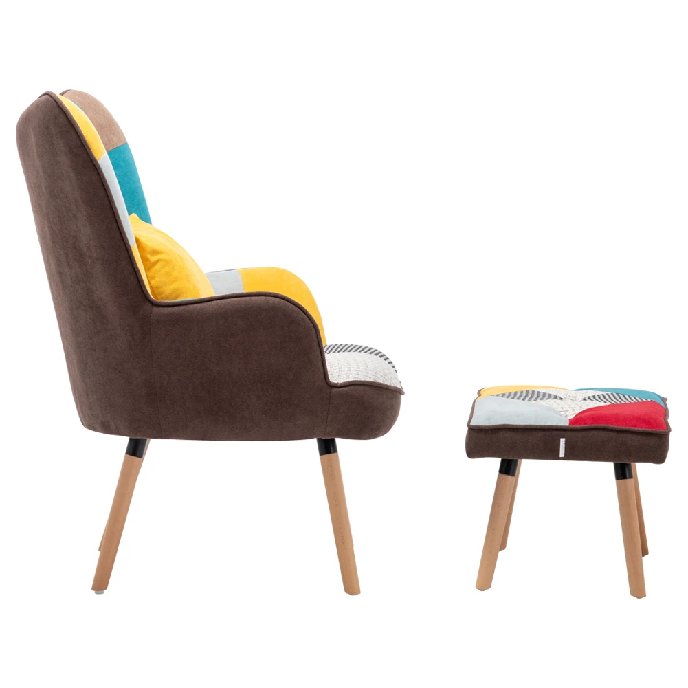 Linen Tufted Back Armchair Multicoloured Velvet with Footrest and Plush Cushion