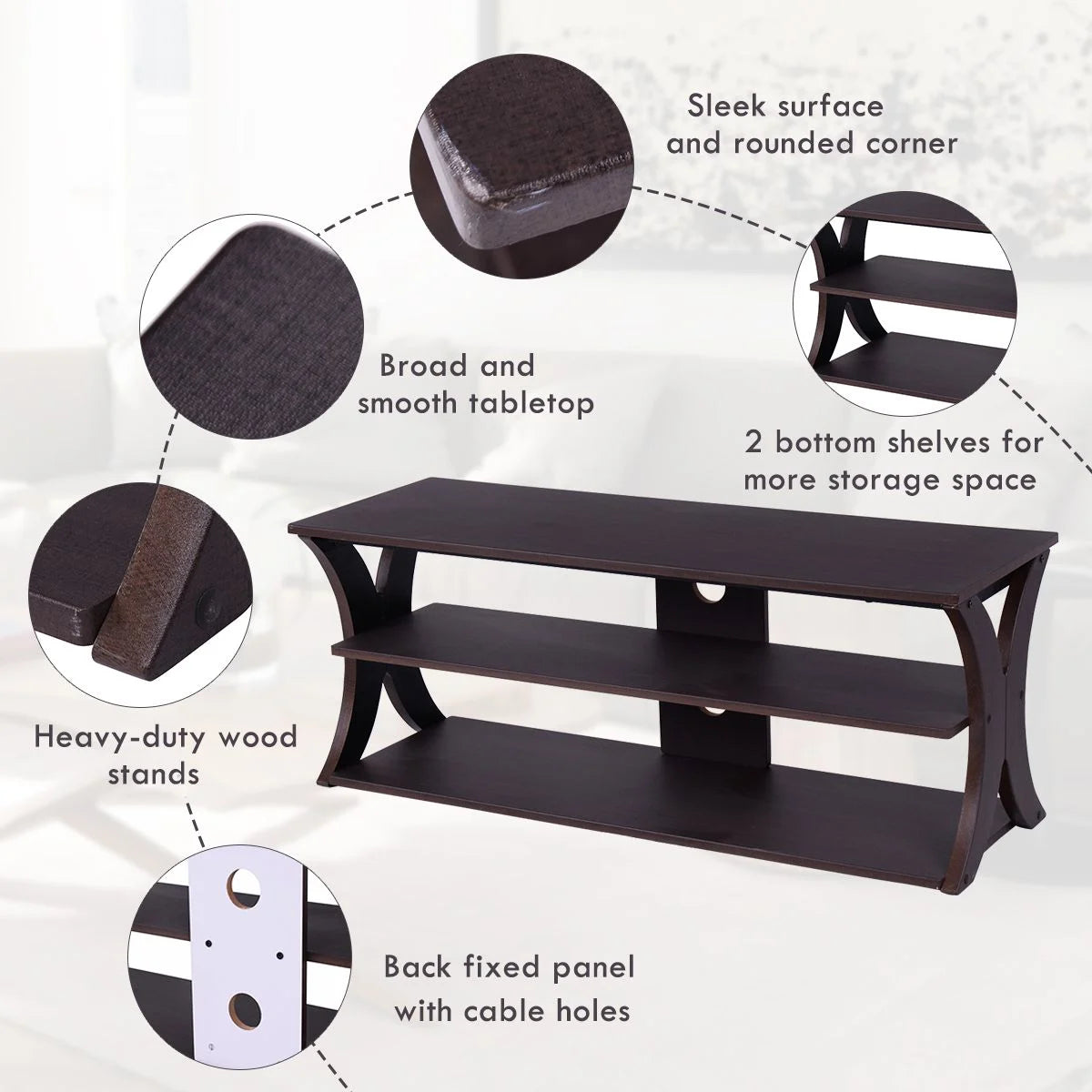 Ample Storage Space: This 3-tier TV table provides plenty of space for your entertainment accessories and keeps room clean. The spacious tabletop is perfect for displaying your TV, potted plants, books, or decorations. Additionally, 2 open storage shelves provide more space to organize your DVD players, CDs and other media devices.