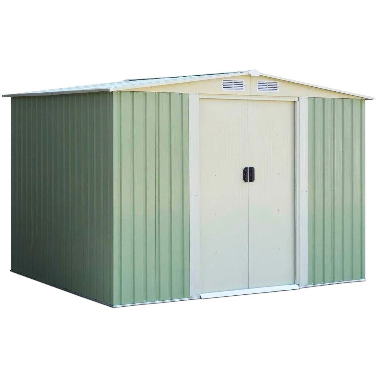 Metal Storage Shed with Sloping Roof Sliding Doors and Air Vents
