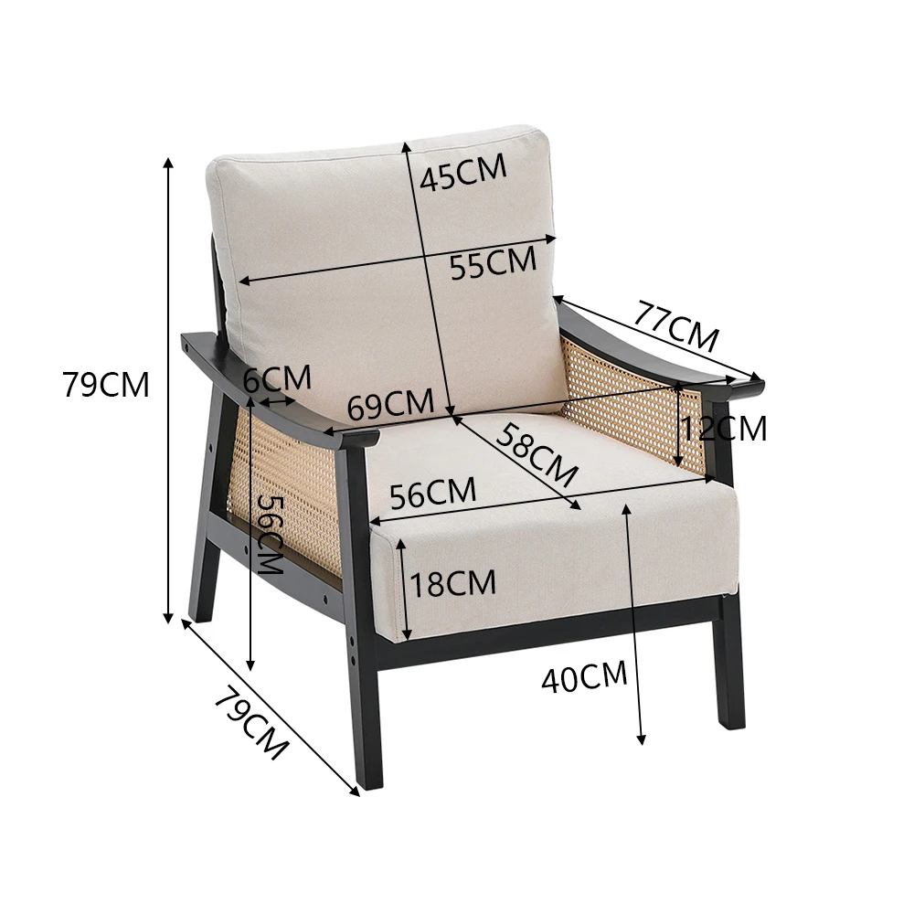 Inspired by mid-century style, the armchair will complement any indoor ensemble with its neutral tone. This armchair is designed with a sturdy wood frame with distinctive woven rattan side panels that exude an airy feel. To ensure maximum support, it is fitted with a comfortable padded seat and backrest, letting you rest and relax in your favourite posture. It is sure to make a dream scenario in any living space.
